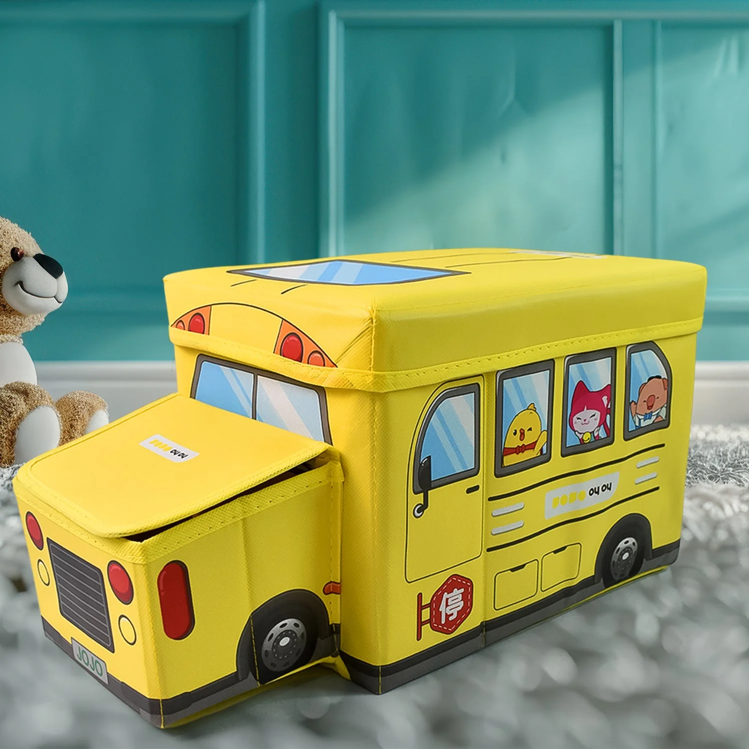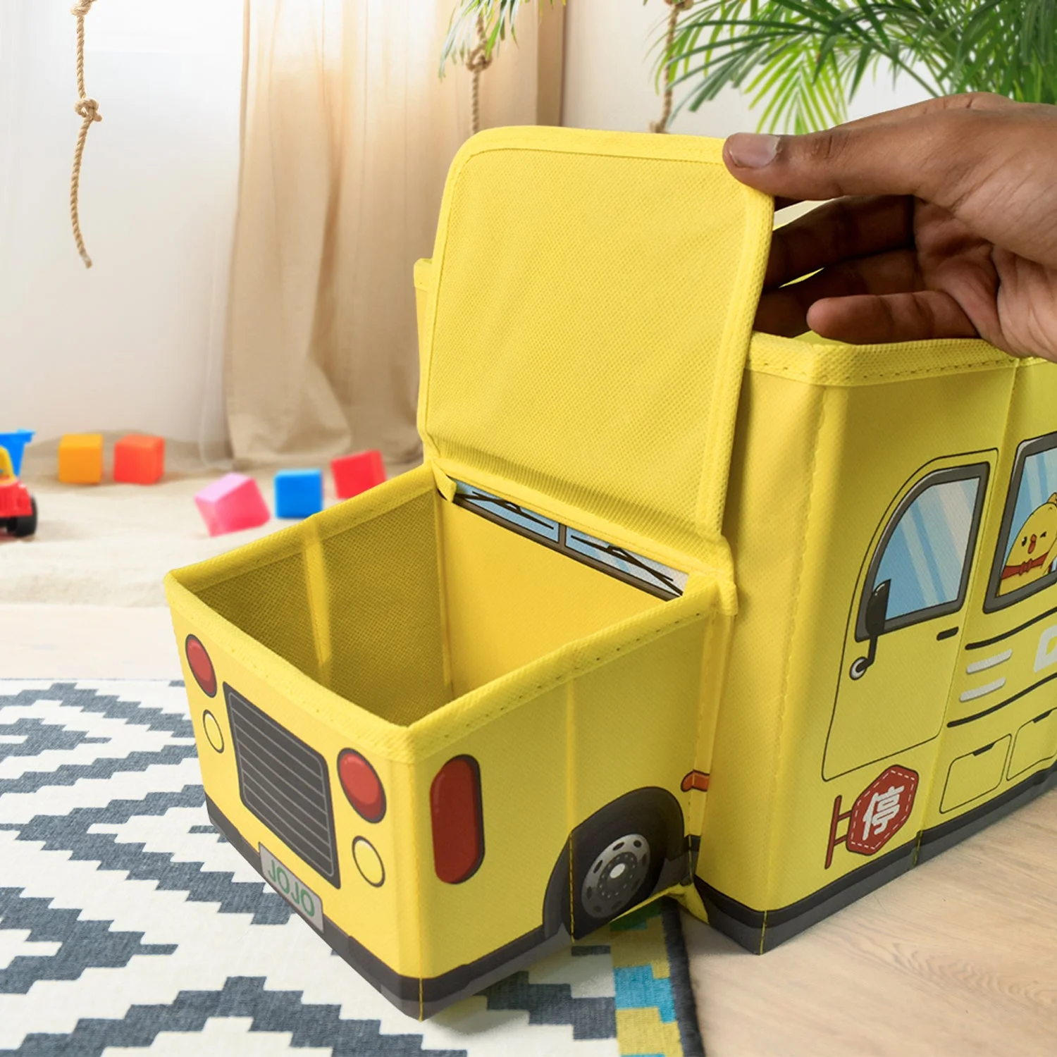 Foldable Bus Shape Toy Box Storage with Lid for Storage of Toys Basket Useful as Toy For Home Decor Books, Game, Baby Cloth Foldable Storage and Toy Box School Bus Shaped Portable/Laundry Box Folding (1 Pc)
