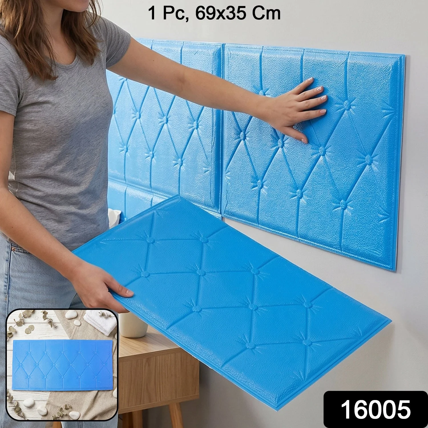 Plain walls can make rooms look dull and unfinished without decorative elements. The Self Adhesive 3D Foam Wall Panel Cushion Wallpaper enhances interiors with a stylish 3D foam wall panel wallpaper design. This self adhesive foam wall panel works as a blue cushion wall wallpaper for modern room décor.