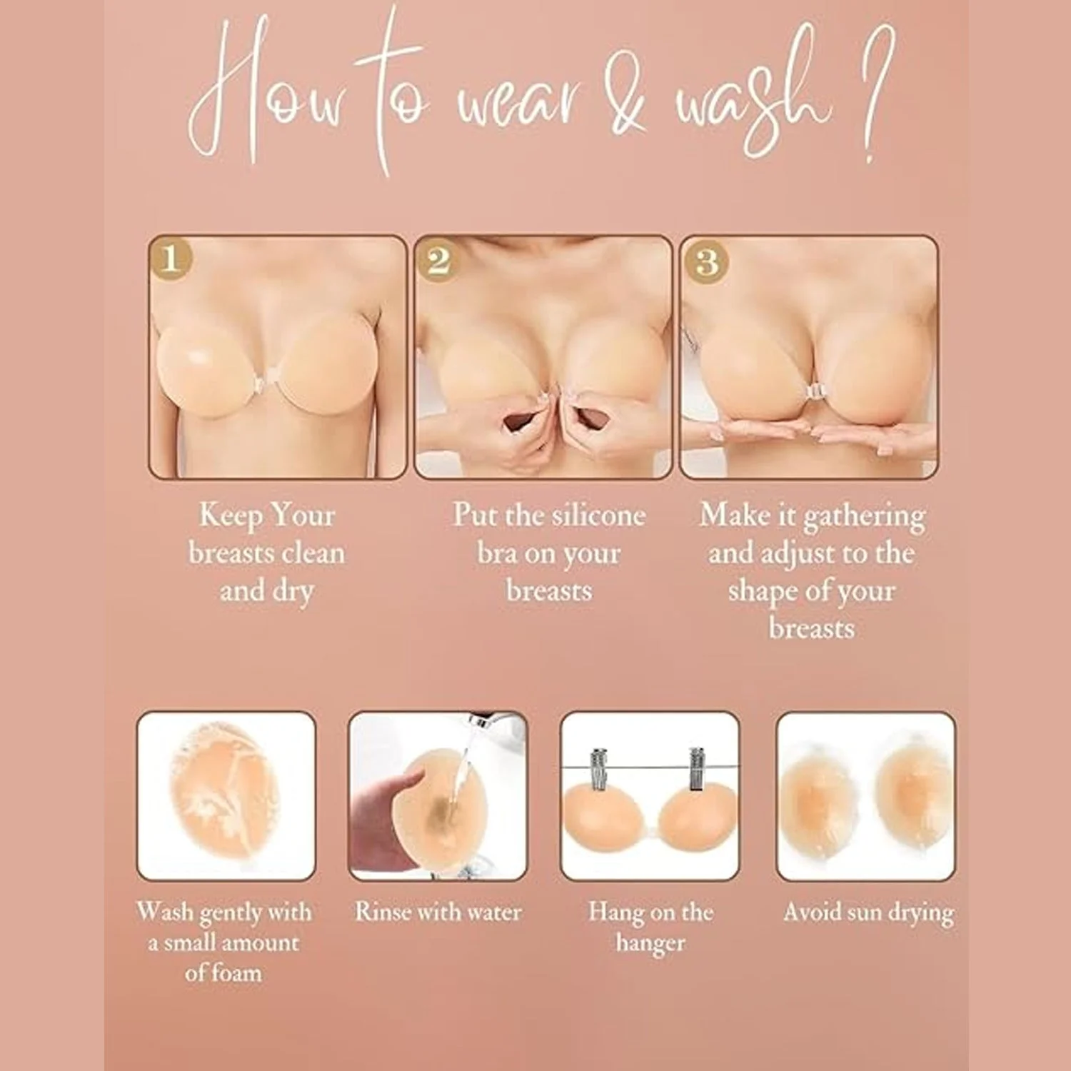 Achieve a flawless and natural lift with this Invisible Stick-On Silicone Bra, designed for women who want to wear deep-neck, off-shoulder, or backless outfits with confidence. The bra cups are made of high-quality, soft silicone that sticks gently to your skin while offering seamless coverage and support. With a front clip closure, it enhances your cleavage naturally without the hassle of straps or wires. Reusable and washable, this bra is your perfect go-to for weddings, parties, or everyday glamour.