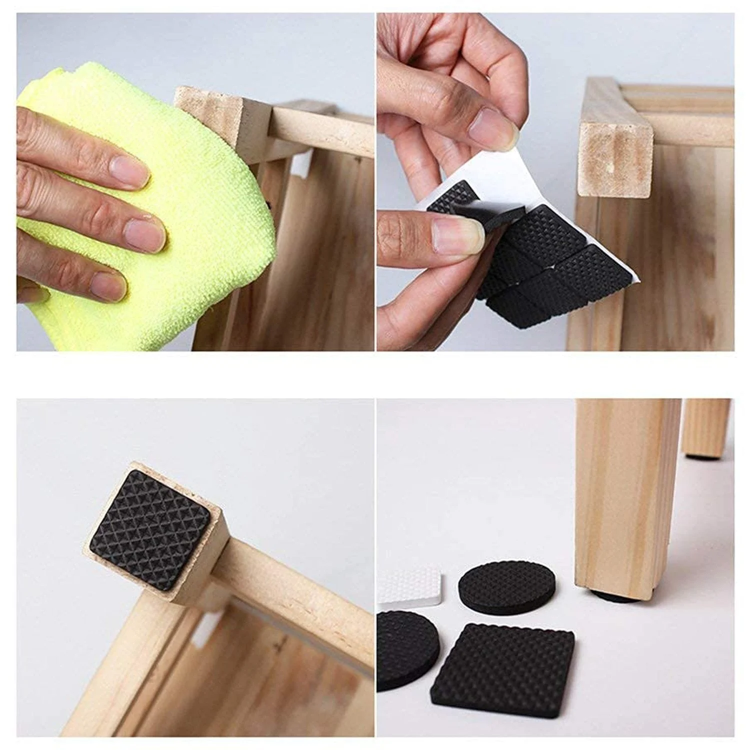 Non slip pads prevent sliding of furniture, self adhesive, easy to peel and stick.