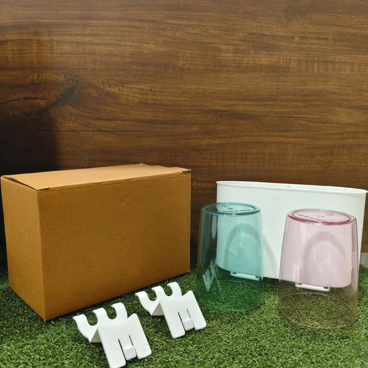 Dual inverted cups protect toothbrushes from dust and maintain better hygiene.