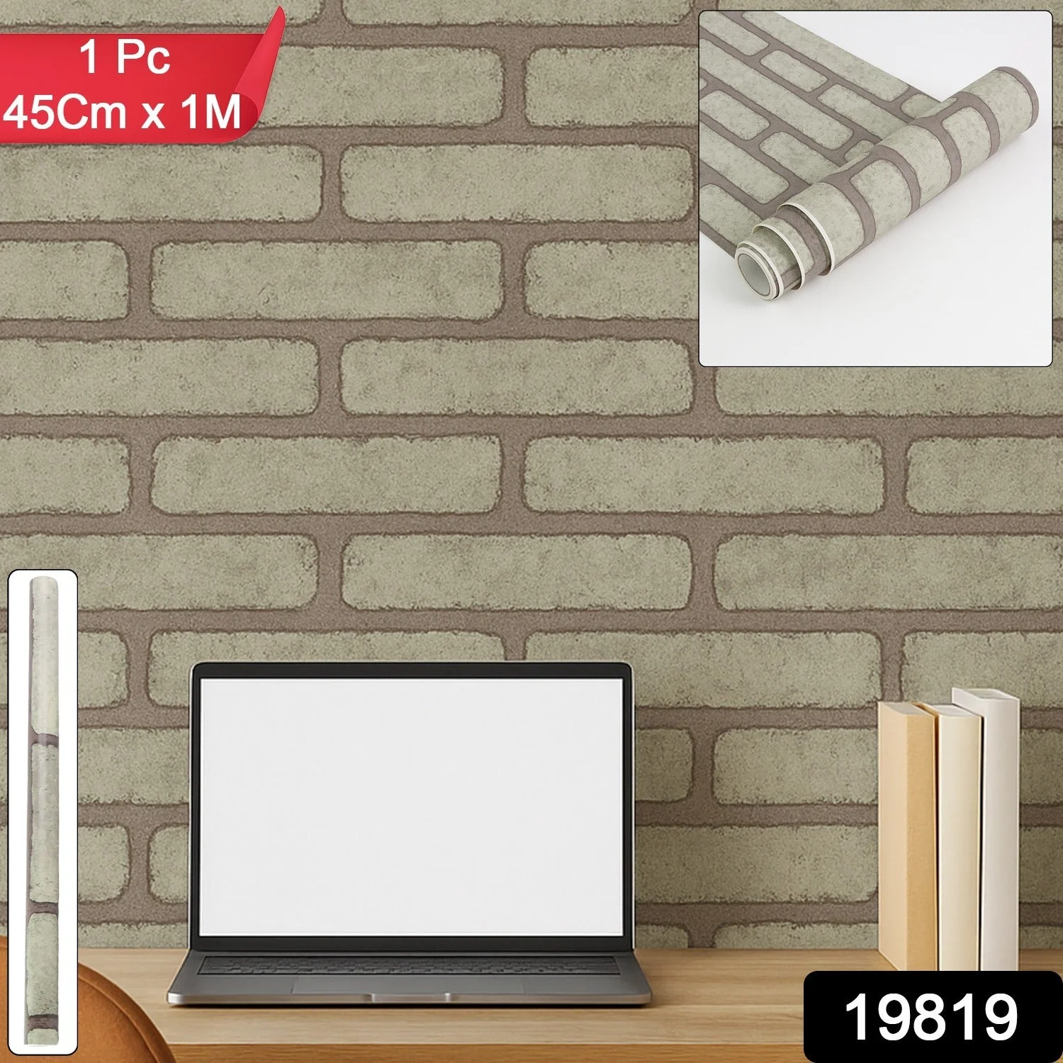 Premium Self-Adhesive Waterproof Wallpaper Roll – Rustic Brick Wall Texture Decorative Vinyl Sheet for Home, Office & Café Interiors – 45 cm x 1 m (1 Pc)