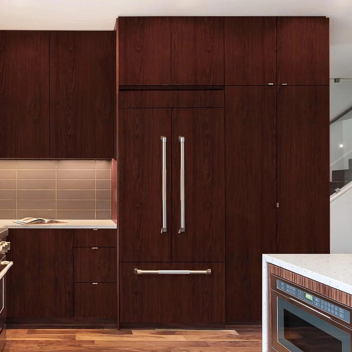 Give your interiors a classic and elegant touch with this premium self-adhesive wallpaper roll featuring a realistic dark wood grain texture. Made from high-quality waterproof and oil-resistant vinyl, this wallpaper is ideal for upgrading furniture, cabinets, walls, and kitchen surfaces. The peel-and-stick design allows quick and easy DIY application without glue or professional help. Its durable, stain-resistant surface is easy to clean and maintain, ensuring long-lasting beauty. Perfect for both modern and traditional spaces, this wood finish wallpaper is an affordable and versatile solution for instant home makeovers.