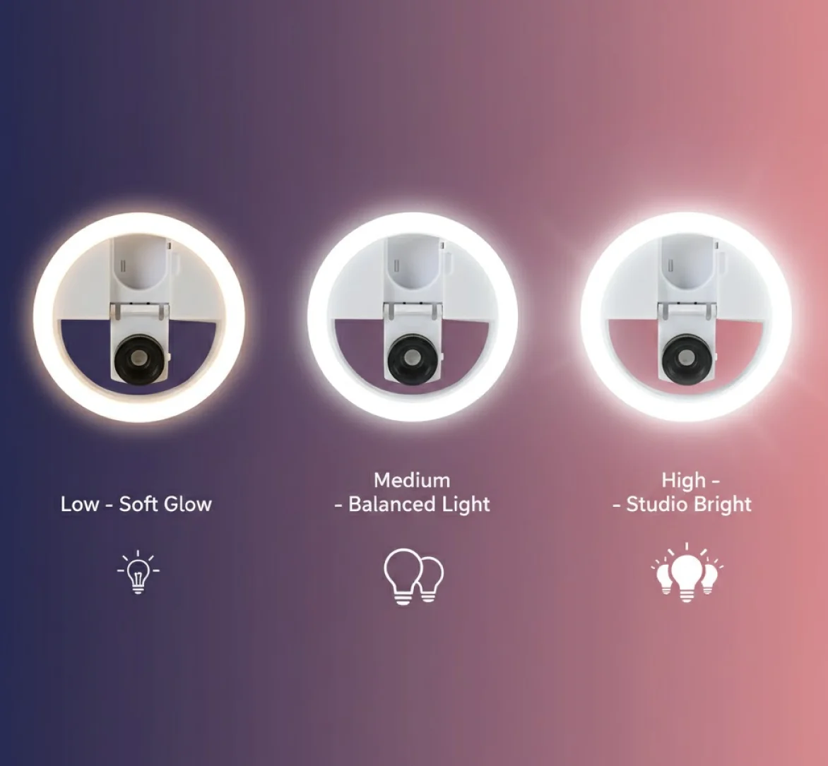 - Easy usage: enjoy your enhanced selfies. Clip the selfie ring on the phone and turn on the switch, choose the brightness you require.