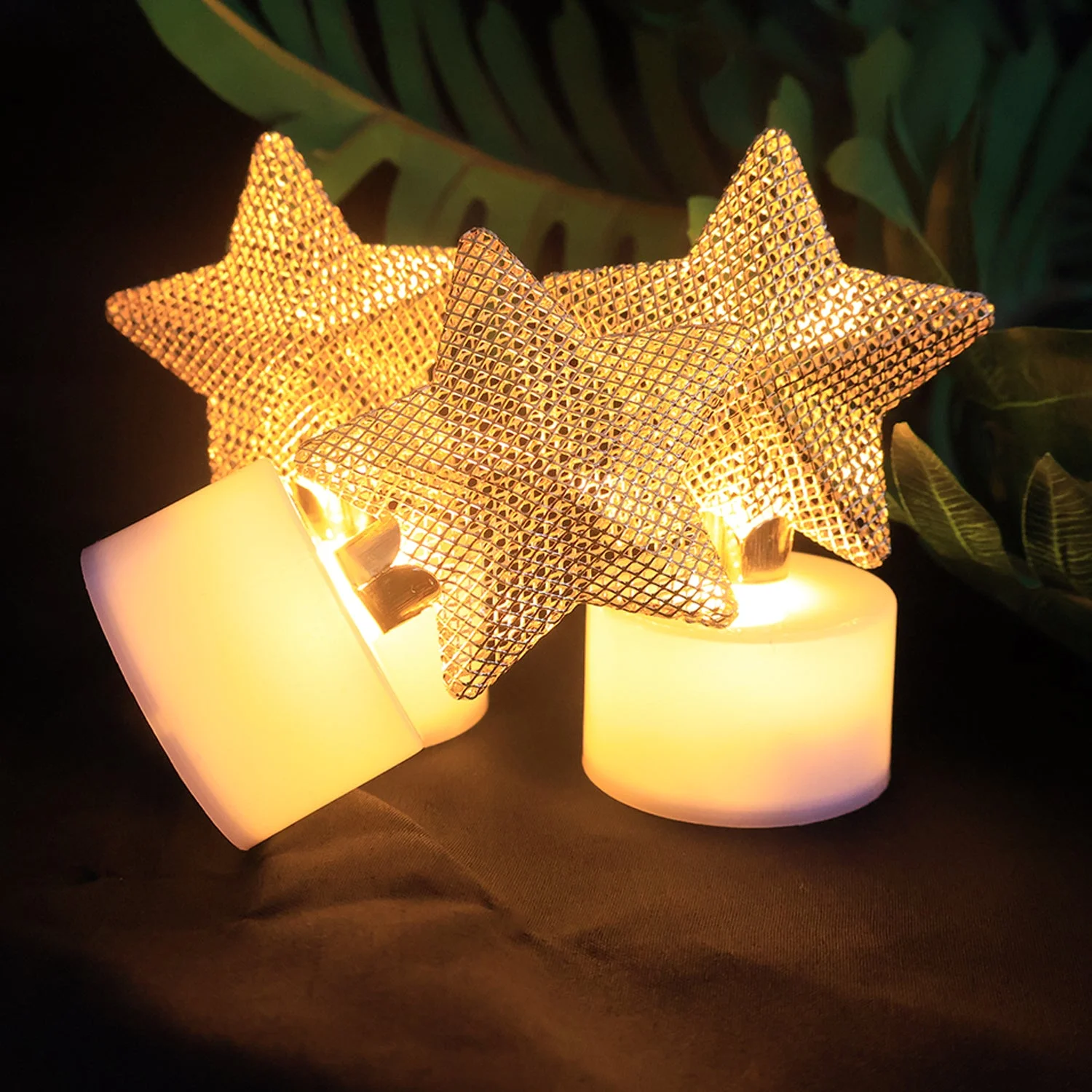 LED candle, flameless candle, tealight candle, decorative candle, battery operated candle, reusable candle, LED light candle, glowing candle, artificial candle, safe candle,LED star candle, decorative tealight candle, flameless LED tealight, battery powered tealight, golden star LED candle, reusable decorative candle