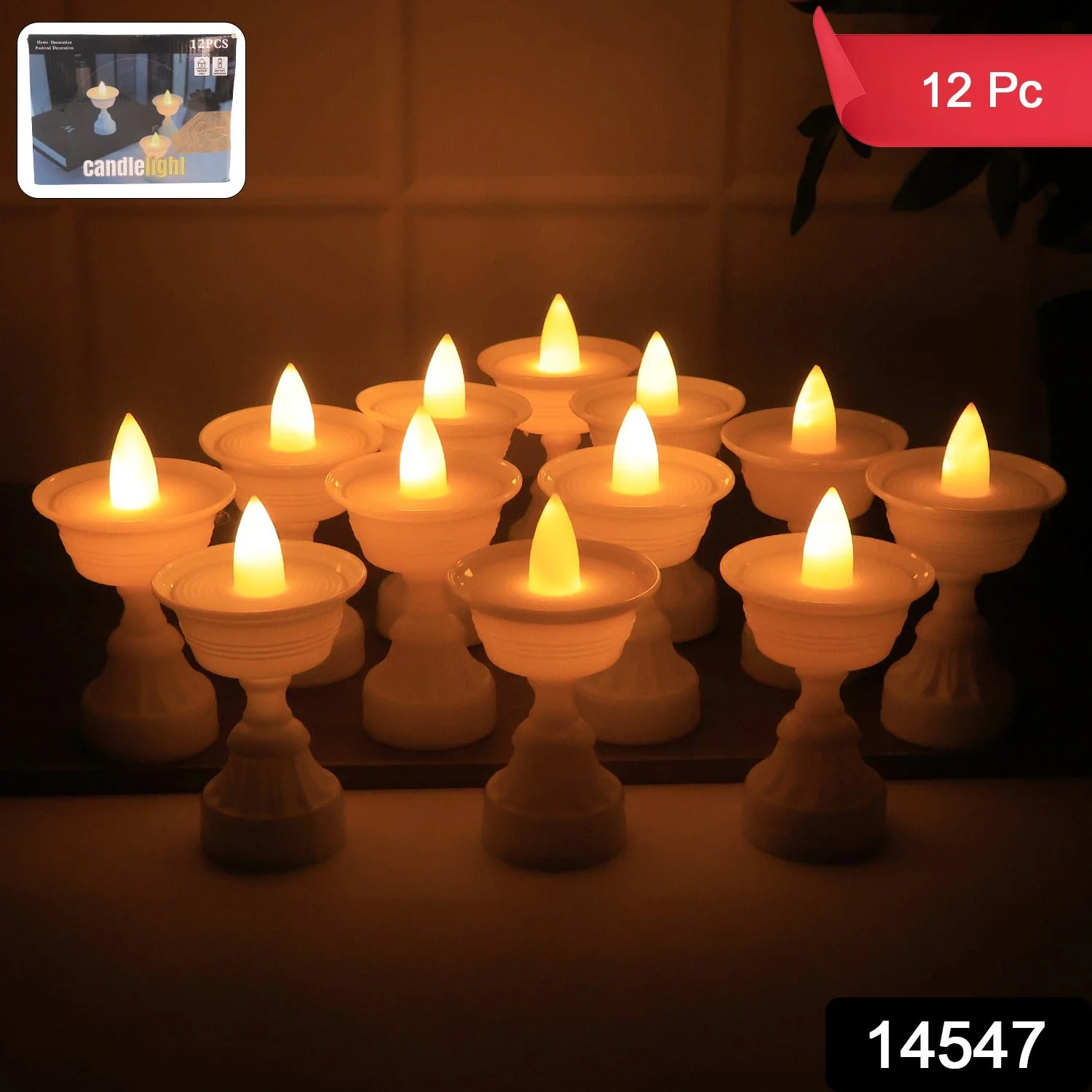 Set of 12 White Water Sensor LED Diyas – Flameless Battery Operated Decorative Lights for Temples, Home, Festivals & Traditional Décor, Diwali Item (Diya, Divo, Diva, Deepak, Jyoti)