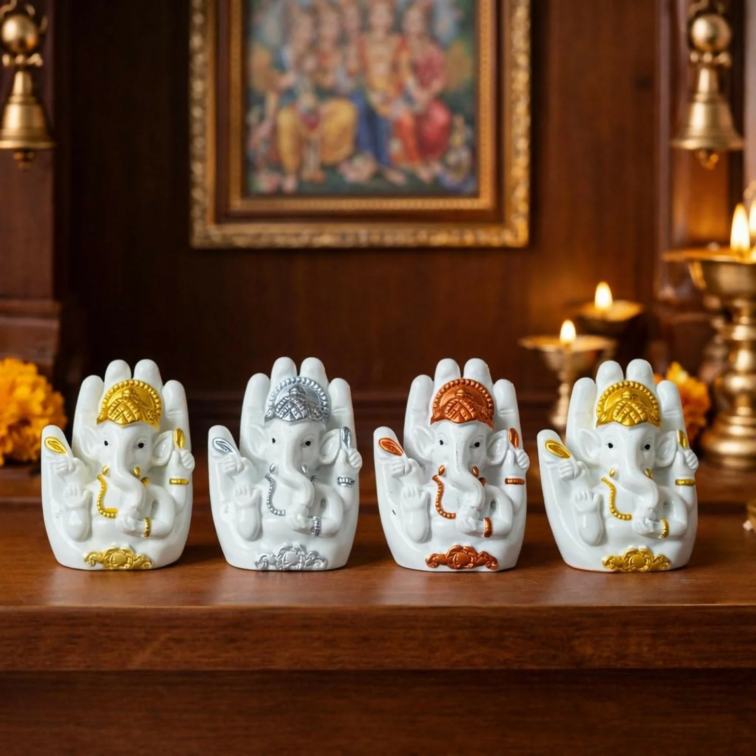 Set of 4 Ganesh Idols – Complete decorative set for home & office