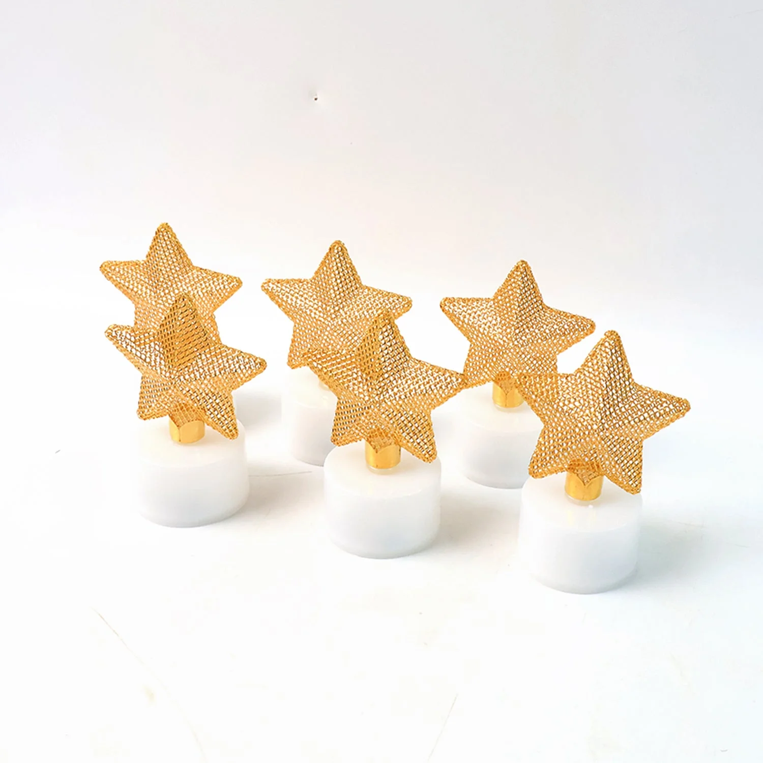 Set of 6 Decorative LED Star Candles – Flameless Battery Operated Tealight with Golden Star Design for Home, Parties, and Festivals