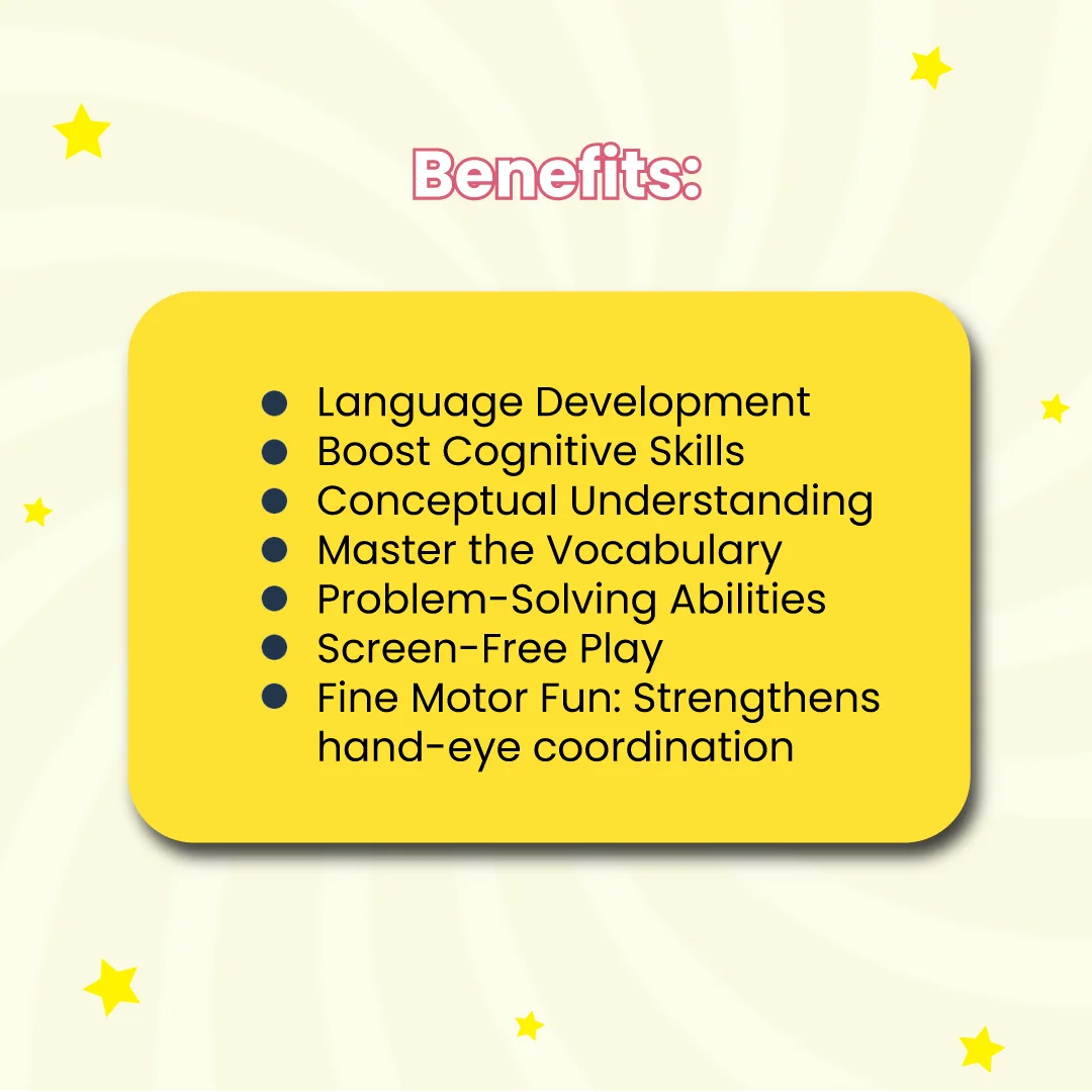 Helps in: Gradually increasing a child's attention span as completing a puzzle requires focus and concentration.