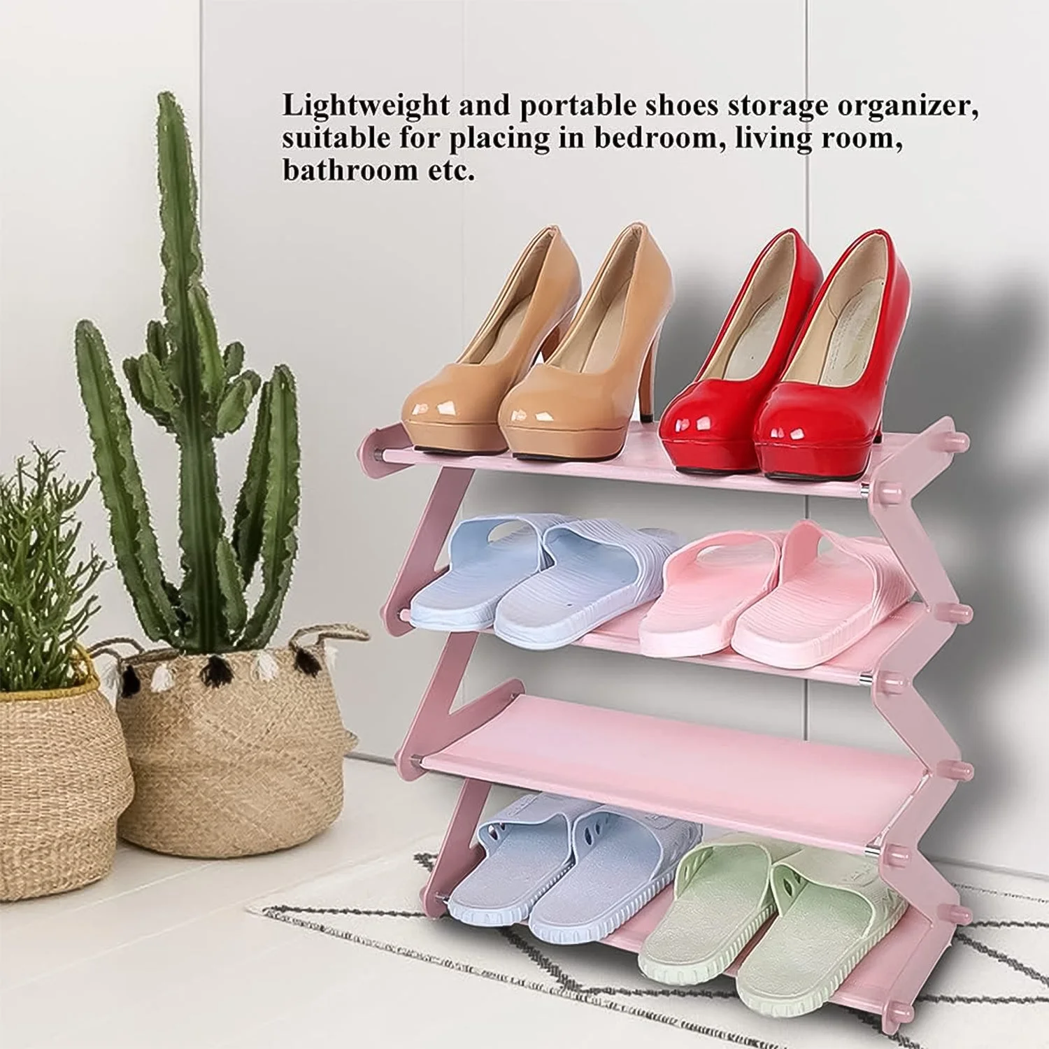 Shoe Rack Z-Shaped Four Layer Shoe Storage Shelf Foldable Vertical Shoe Shelf for Living Room Space Saving Shoe Organizer Rack for Home and Office (1 Pc / 4 Layer)