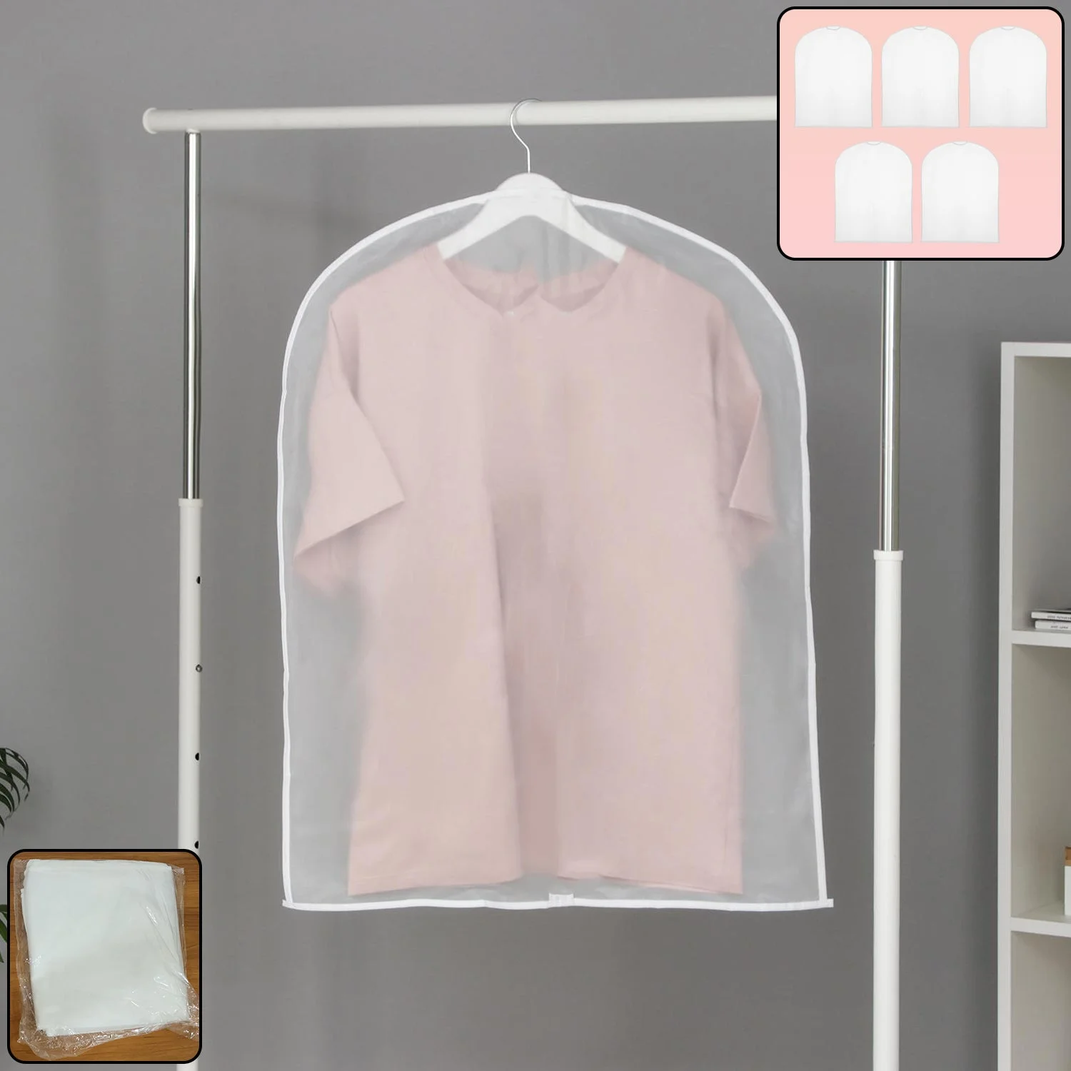 short hanging garment cover, pack of 5 garment bags, breathable clothes protector, dust-proof clothing covers, wardrobe storage bags, shirt storage cover, tops garment protector, kurti storage bag, daily wear clothing cover, closet organizer bags, multipurpose garment covers, short clothes cover