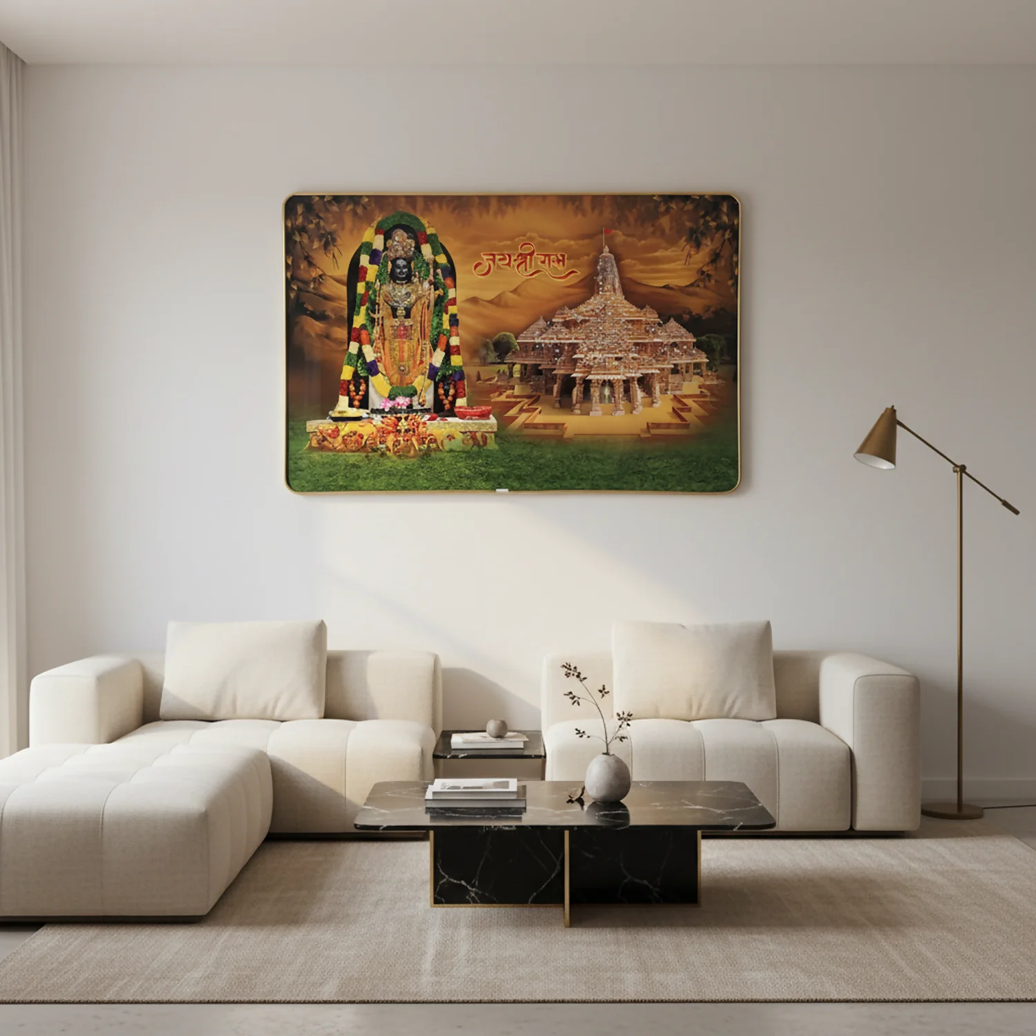 Bring divine blessings and spiritual elegance into your home with this Shree Ram Mandir Wall Art Frame, beautifully depicting Lord Shree Ram alongside the sacred Ayodhya Ram Mandir. Designed to inspire devotion, positivity, and peace, this artwork blends spiritual emotion with premium modern décor styling.