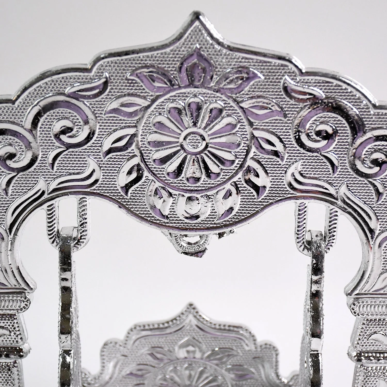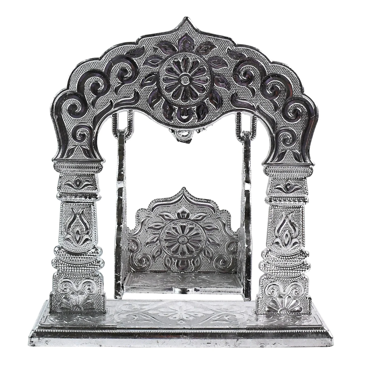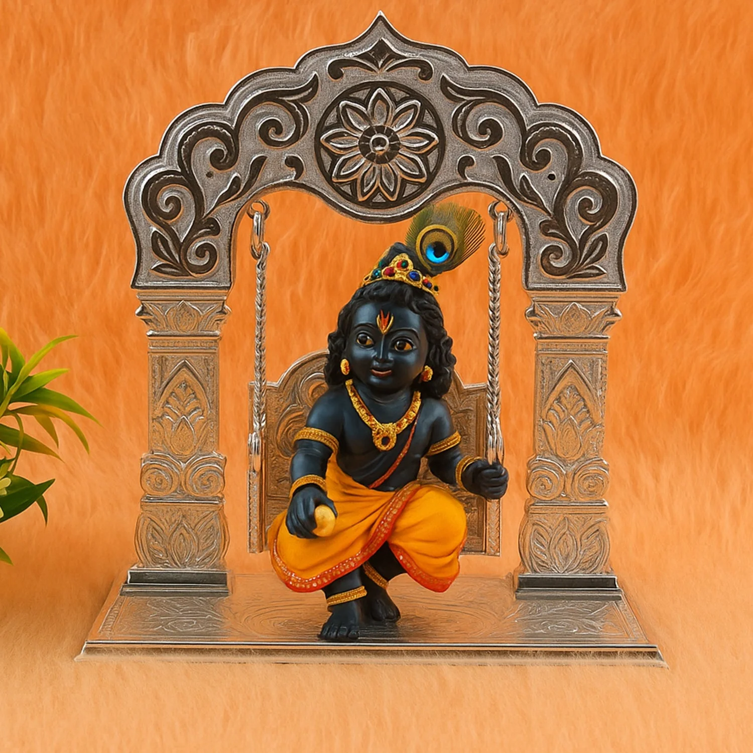 Celebrate devotion with elegance using the beautifully crafted Bal Gopal Jhula (Swing), a perfect centerpiece for your home mandir or festive setup. This ornamental swing features traditional Indian floral and geometric motifs embossed on a durable silver-coated metal frame, symbolizing divine beauty and cultural richness. It is specially designed to place your Laddu Gopal or Krishna idol, offering a charming blend of spiritual significance and artisan workmanship. Whether for Janmashtami, daily pooja rituals, or as a spiritual gift, this Jhula adds grace, reverence, and decorative allure to any sacred space.