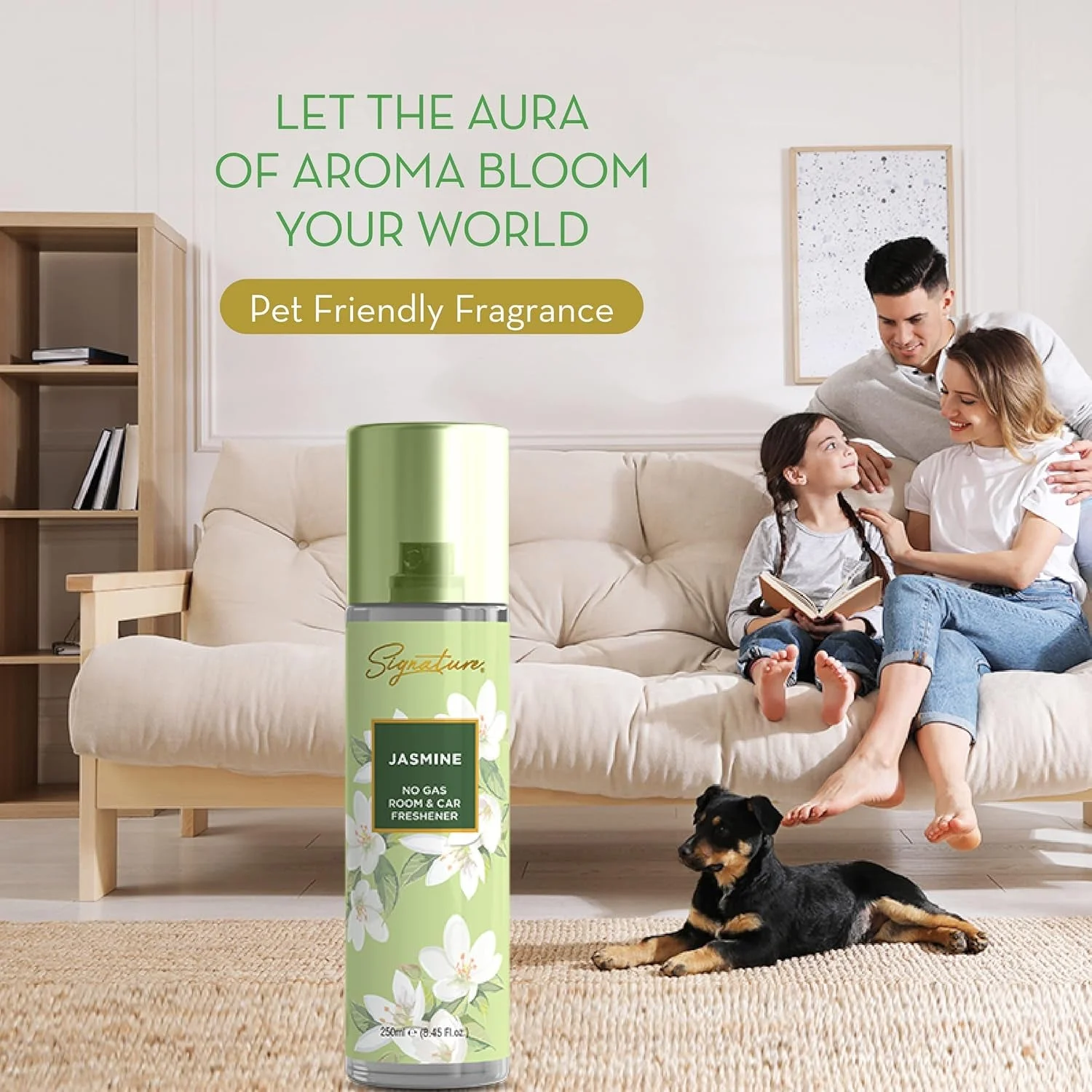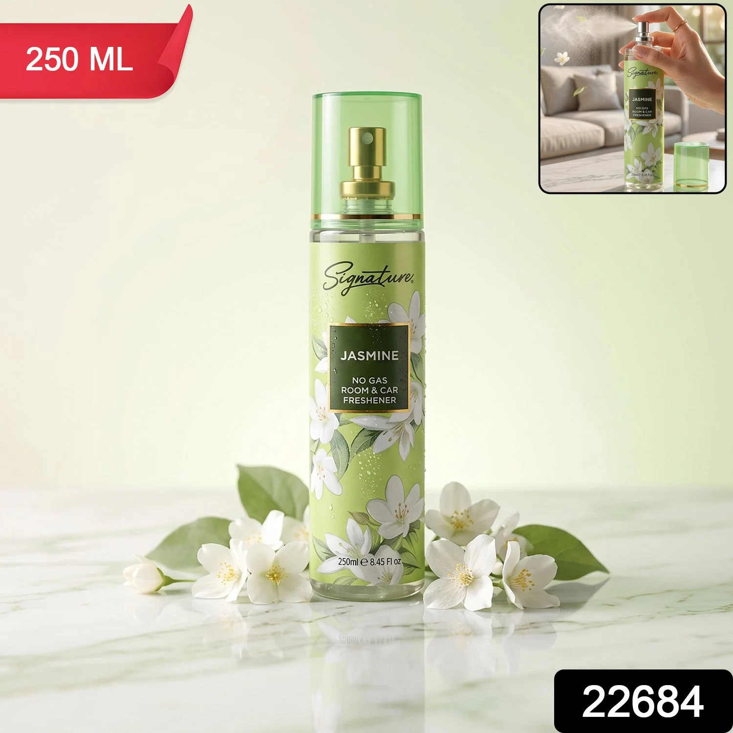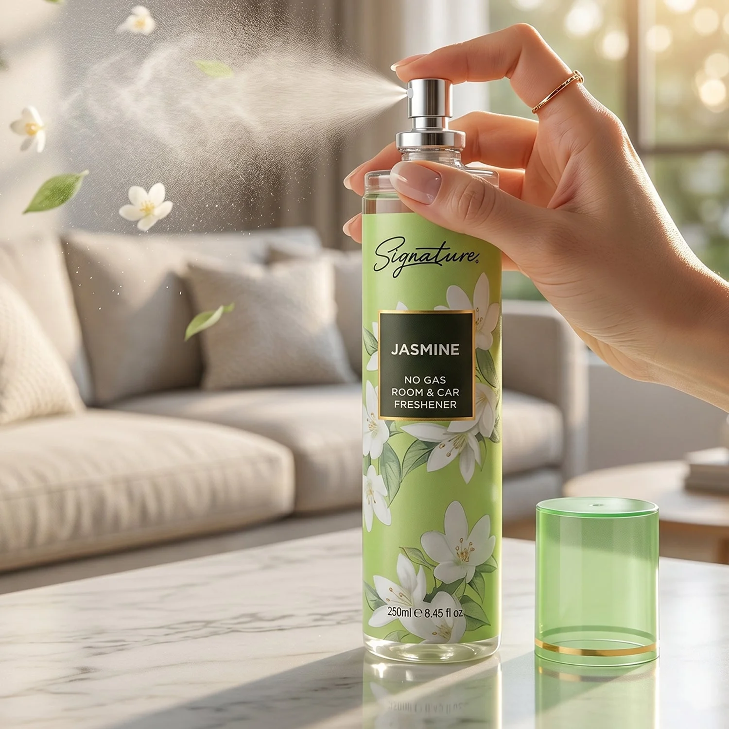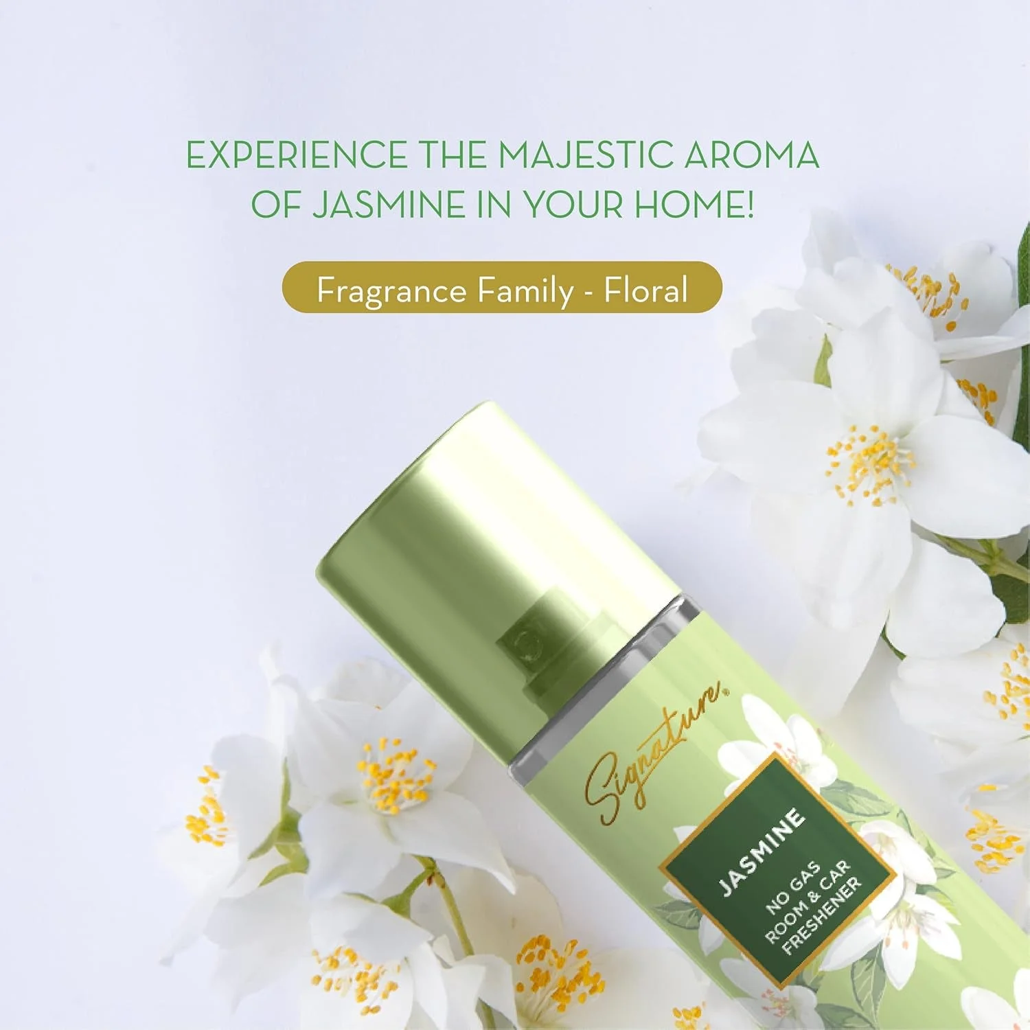 Signature Jasmine Room & Car Freshener Spray 250 ML No Gas Air Freshener Long Lasting Fragrance Spray for Home Office Car Premium Floral Scent Spray 1 Pc
