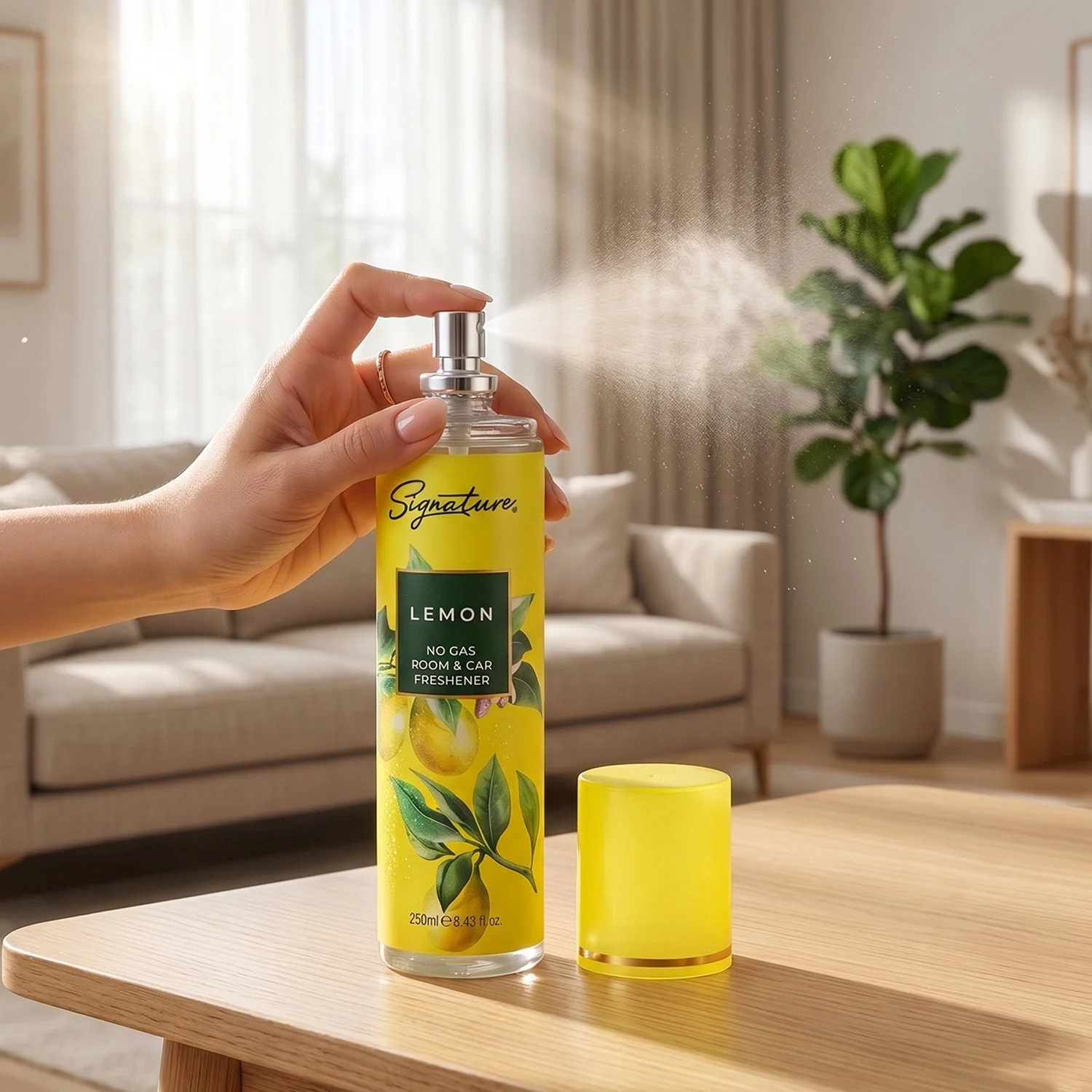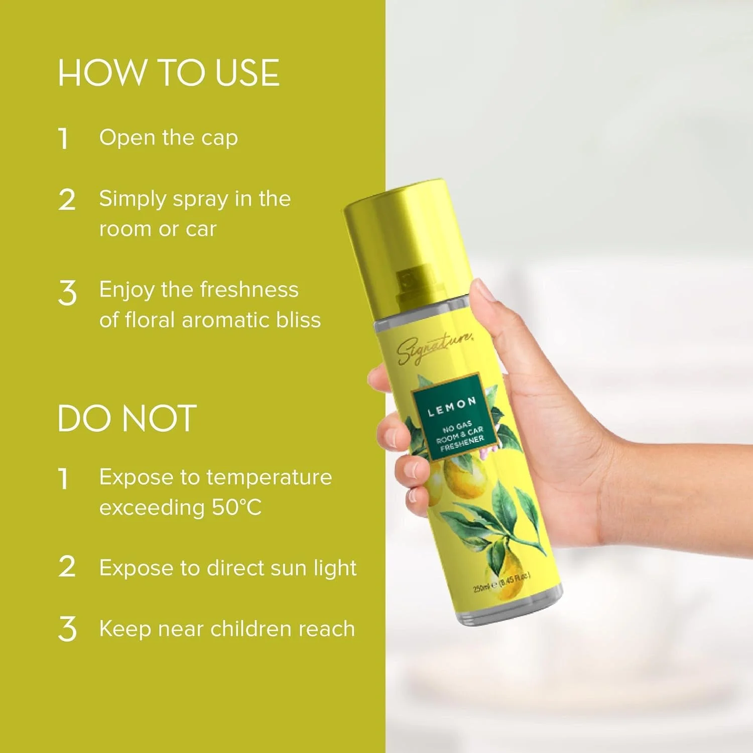 Signature Lemon Room & Car Freshener Spray 250 ML No Gas Air Freshener Long Lasting Citrus Fragrance Spray for Home Office Car Refreshing Odor Control Spray 1 Pc