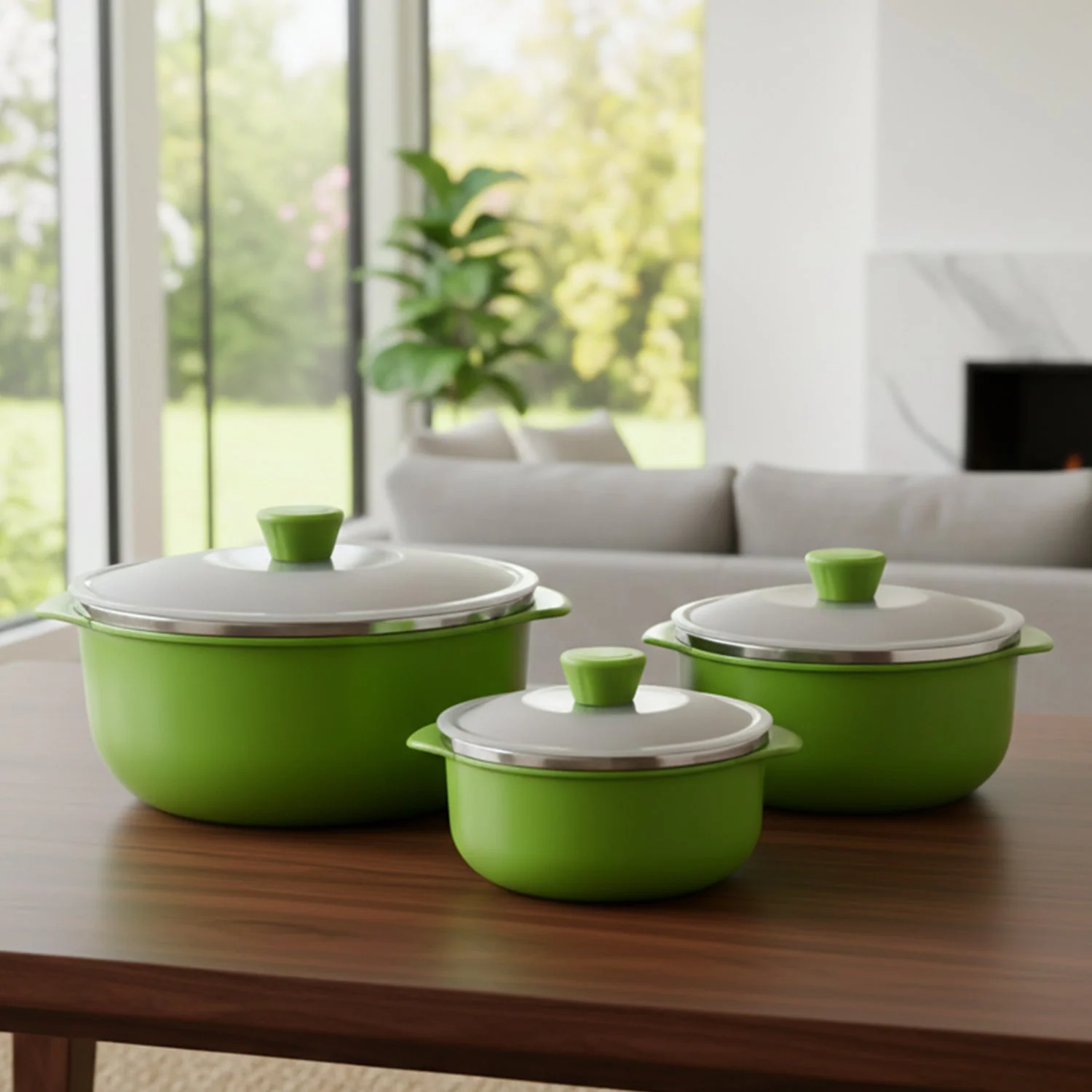 This signature multipurpose serving bowl set is a practical and elegant solution for everyday kitchen and dining needs. The set includes three matching bowls with fitted lids, designed to serve, store, and prepare a wide variety of food items. The sturdy build ensures durability for regular use, while the lids help keep food covered and protected from external exposure. Ideal for both hot and cold food, these bowls are suitable for daily meals, family gatherings, and kitchen prep tasks. Their simple yet functional design makes them easy to use, clean, and store in any modern kitchen.
