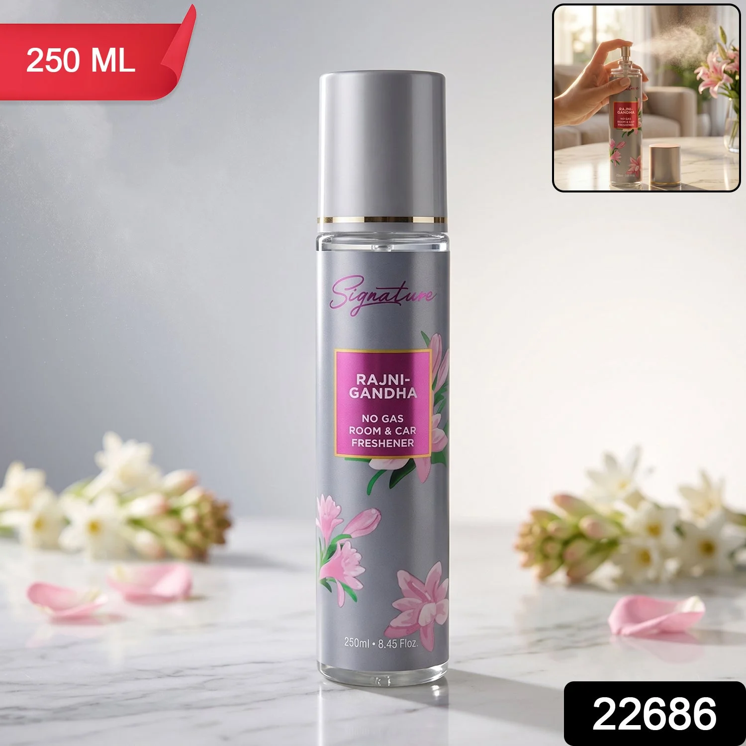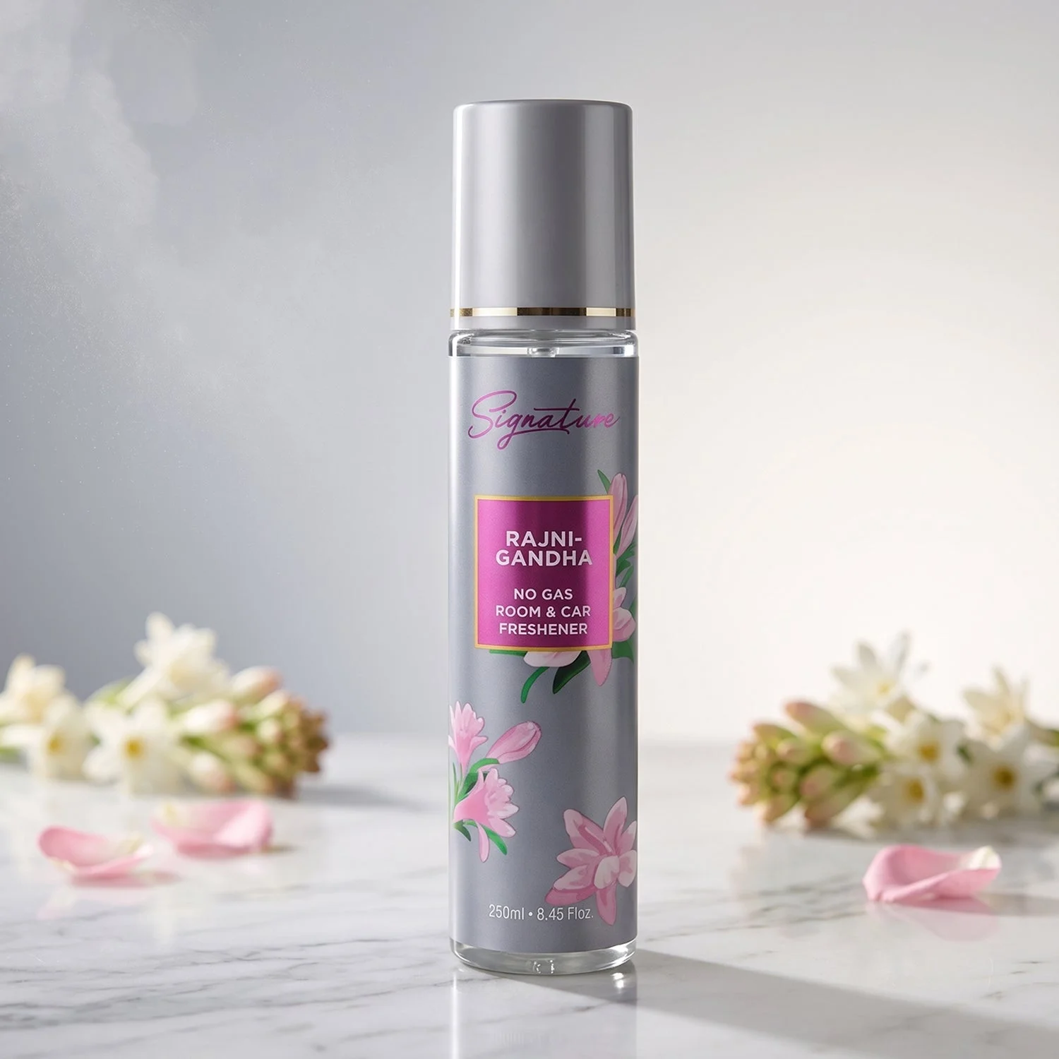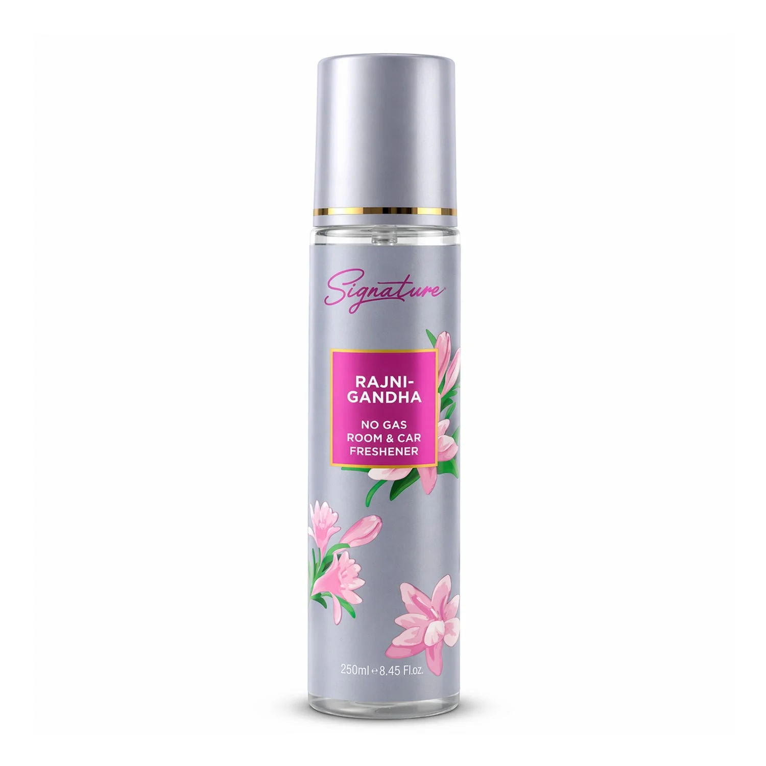 Signature Rajnigandha Room & Car Freshener Spray 250 ML No Gas Air Freshener Long Lasting Floral Fragrance Spray for Home Office Car Odor Control Refreshing Spray 1 Pc