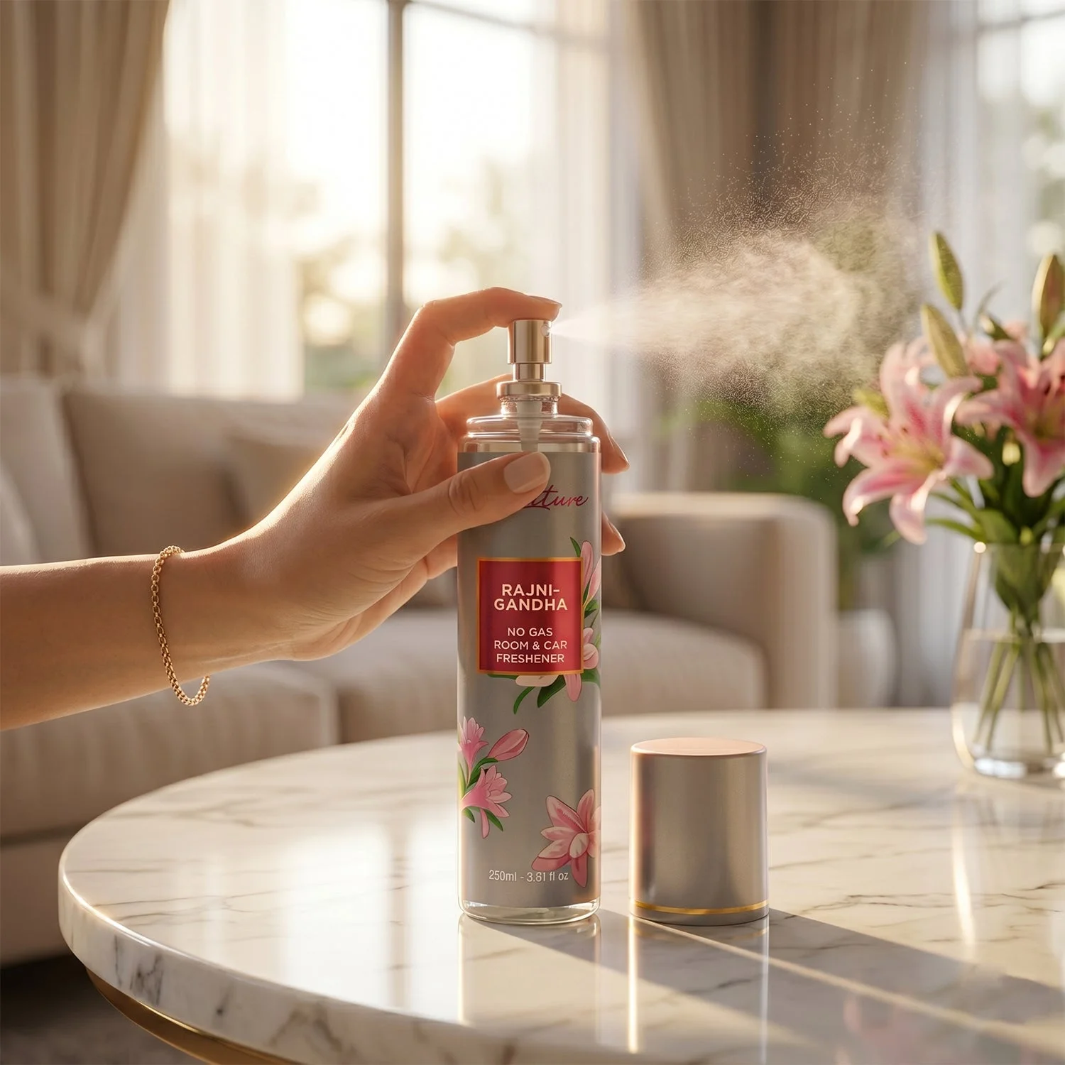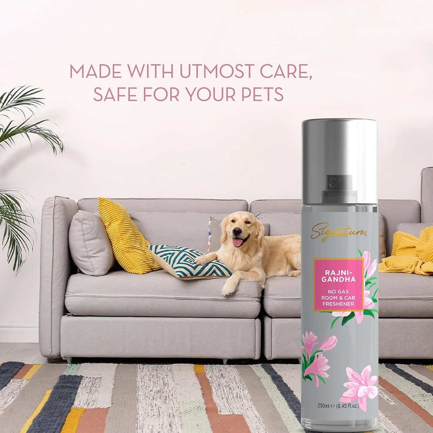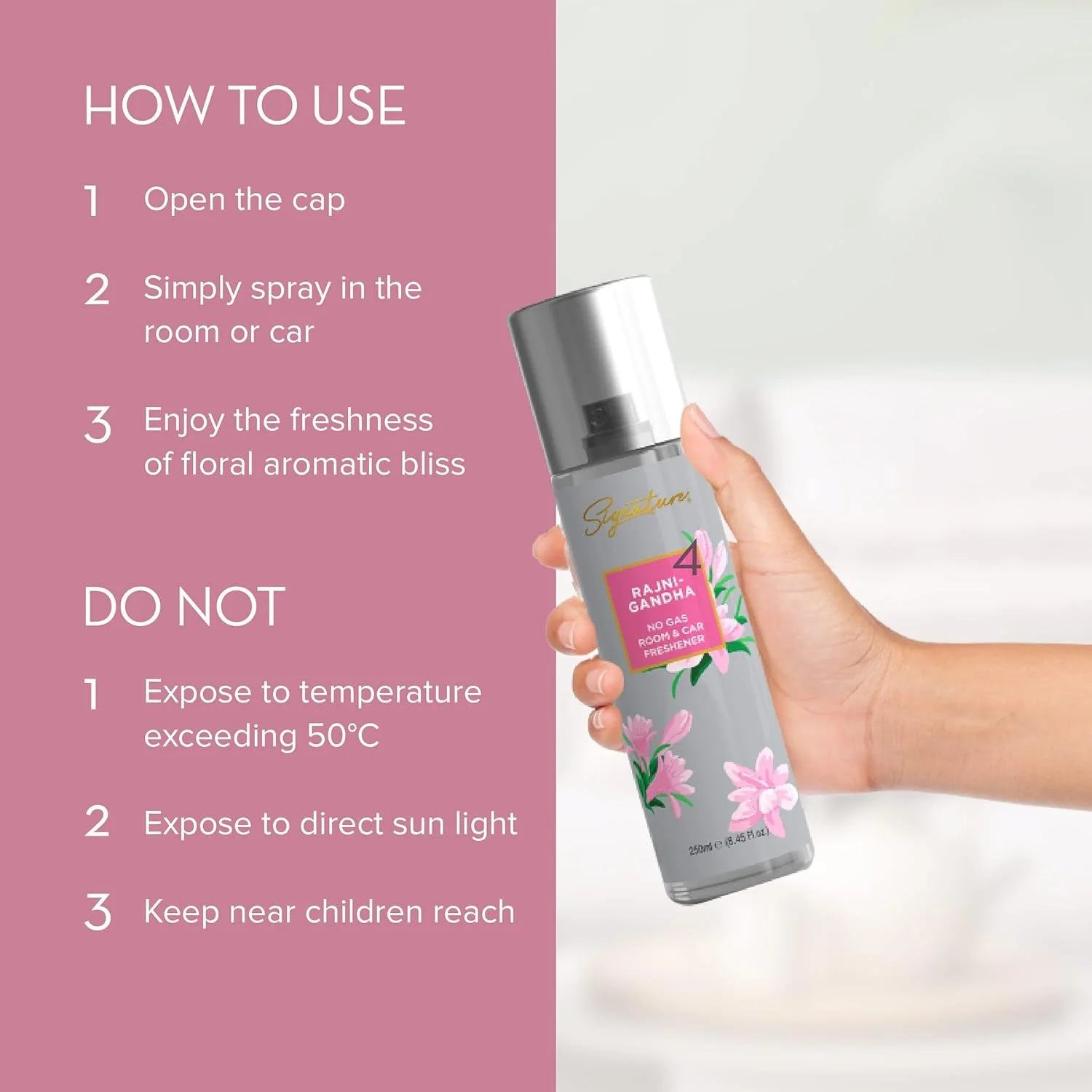 Signature Rajnigandha Room & Car Freshener Spray 250 ML No Gas Air Freshener Long Lasting Floral Fragrance Spray for Home Office Car Odor Control Refreshing Spray 1 Pc