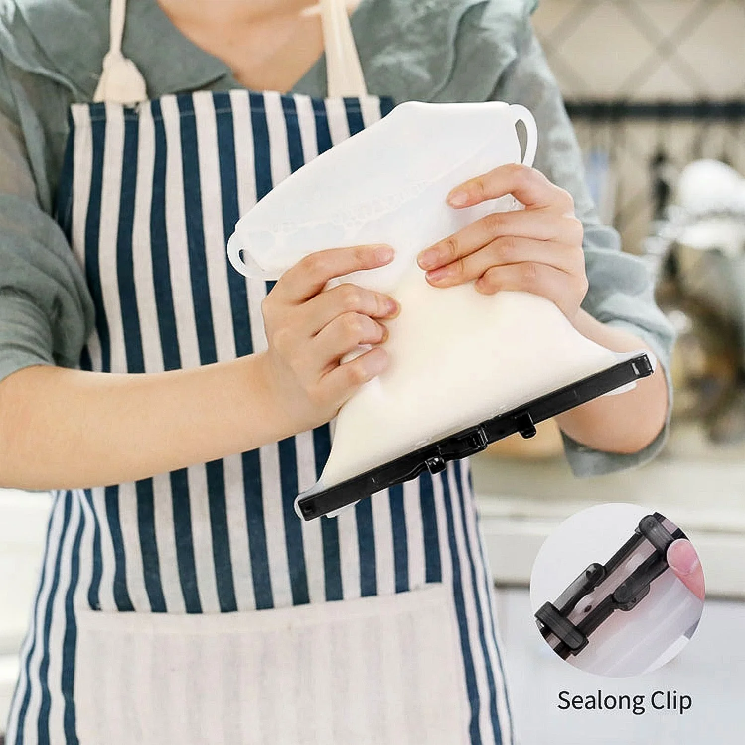 Reusable Silicone Food Storage Bag Set Leakproof Lock Reusable Flat Bottom Freezer Bags, Sandwich Bags, Silicone Food Grade Kids Snack Bags, BPA Free Microwave Dishwasher Safe (1 Pc)
