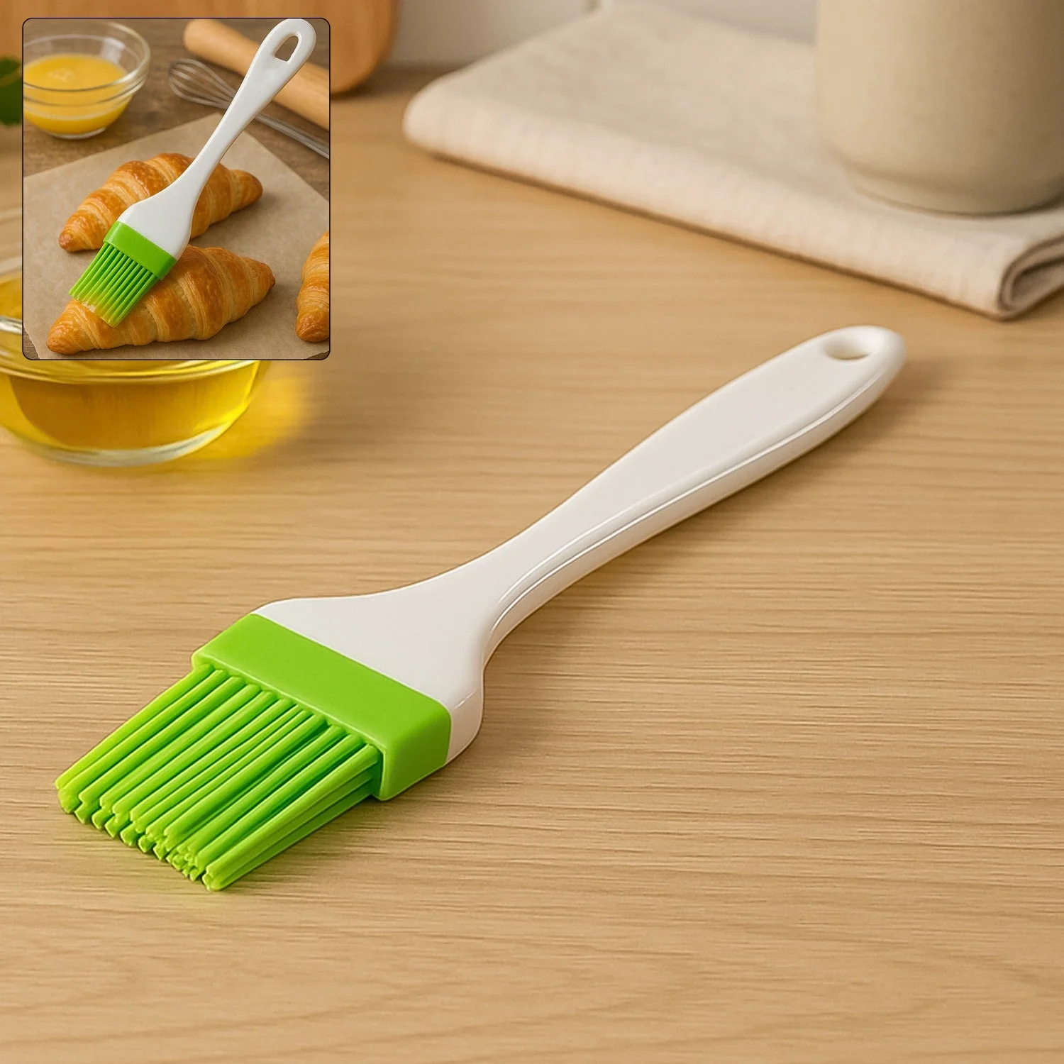 Silicone Kitchen Oil Spatula Brush with Handle Pastry / Cake Brush / Heat Resistant Ghee Brush for Non-Stick cookware, Mixer, Grilling, Cooking, Tandoor, Baking, Glazing, BBQ in Kitchen (17 cm / 1 Pc)