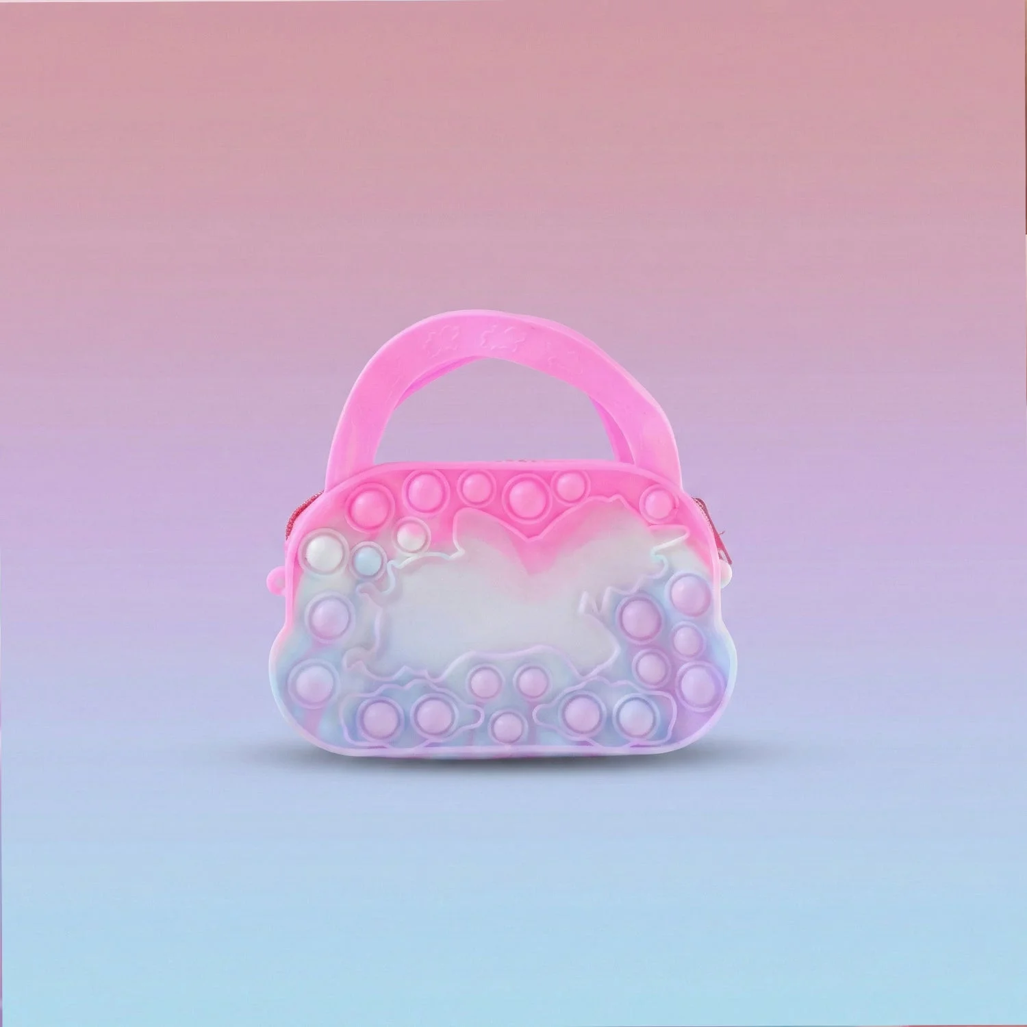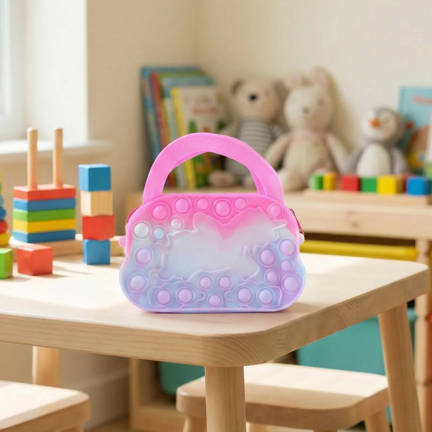 This Silicone Pop It Coin Purse is a stylish and functional mini handbag designed with built-in bubble fidget features that provide both storage and stress relief. The attractive handbag shape with a smooth zipper closure keeps small essentials like coins, hair clips, keys, and tiny accessories secure. The soft pop bubbles on the front create a satisfying pressing experience, helping reduce stress and improve focus for kids and adults alike. Its compact and lightweight design makes it easy to carry in hand or place inside a school bag. Perfect for daily use, travel, gifting, or as a trendy accessory, this pop bubble purse combines fun and practicality in one adorable design.
