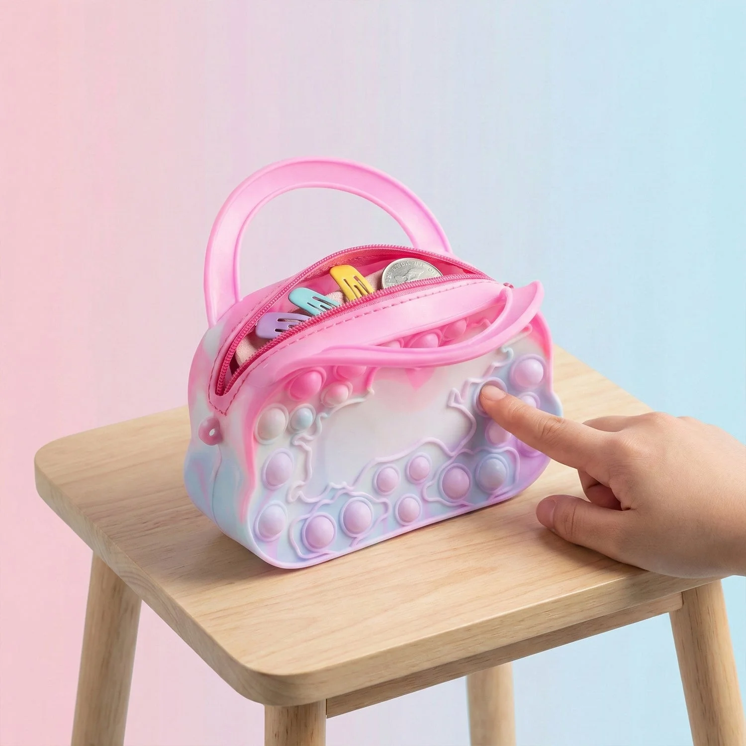 silicone pop it coin purse, bubble fidget purse, mini storage pouch, zipper coin pouch, handbag style fidget toy, kids coin purse, girls pop it purse, daily carry pouch, stress relief pop it, handheld fidget bag, portable coin bag, silicone fidget pouch, bubble sensory toy purse, mini zipper bag, pop it handbag, fidget toy storage, kids mini purse, girls bubble pouch