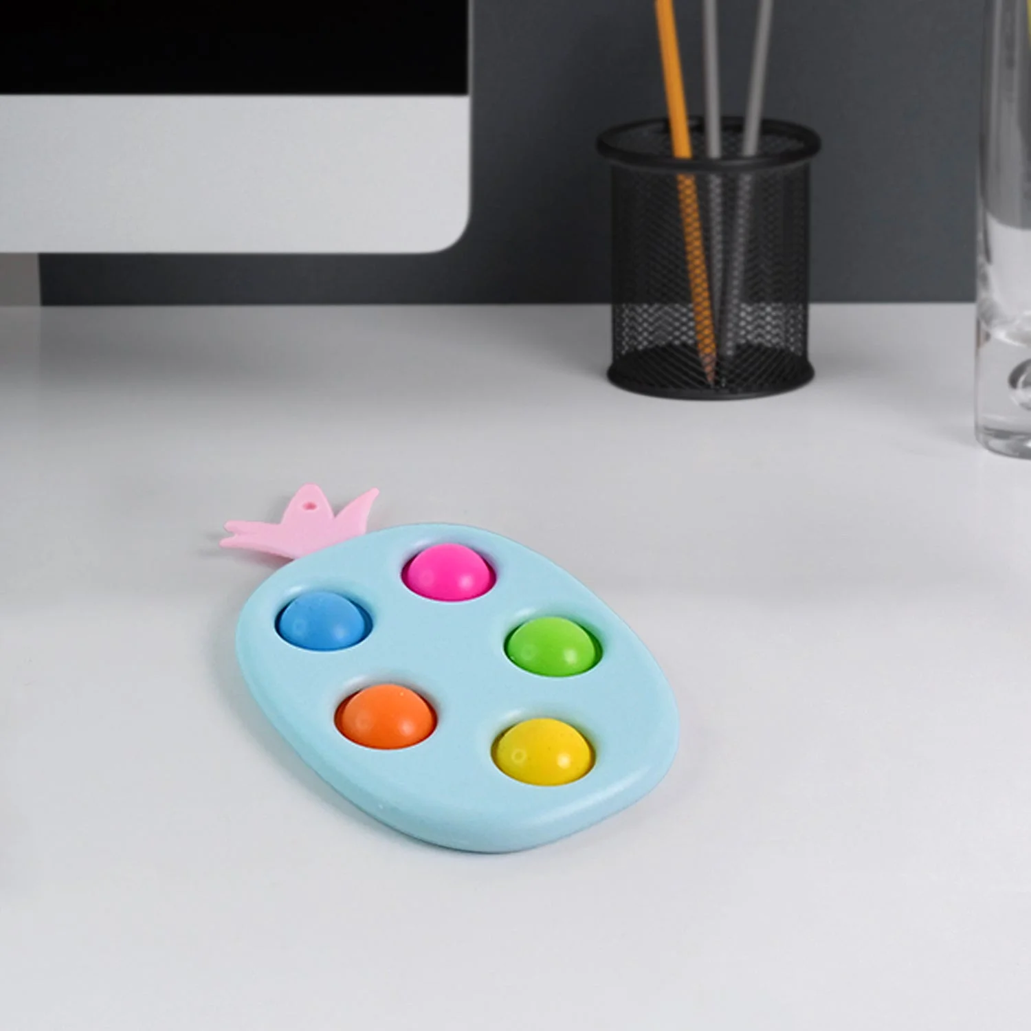 This adorable pineapple-shaped silicone push pop toy is both a fun plaything and a stress relief tool. Designed with five colorful popping bubbles, it helps improve focus and fine motor skills in children while offering a soothing sensory experience for people of all ages. Lightweight and compact, this toy doubles as a keychain, making it easy to carry on school bags, purses, or belt loops. Whether at home, school, or during travel, this toy adds color and calm to any moment.