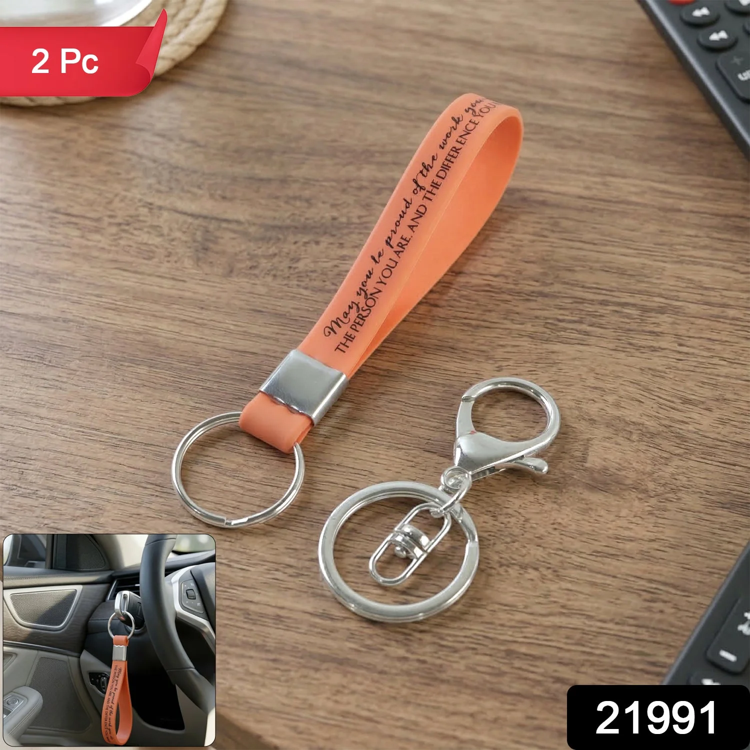 Silicone Wrist Strap Keychain with Metal Key Ring Hook for Car Keys Bike Keys Bag Charm Holder Loop Keychain (2 Pc)