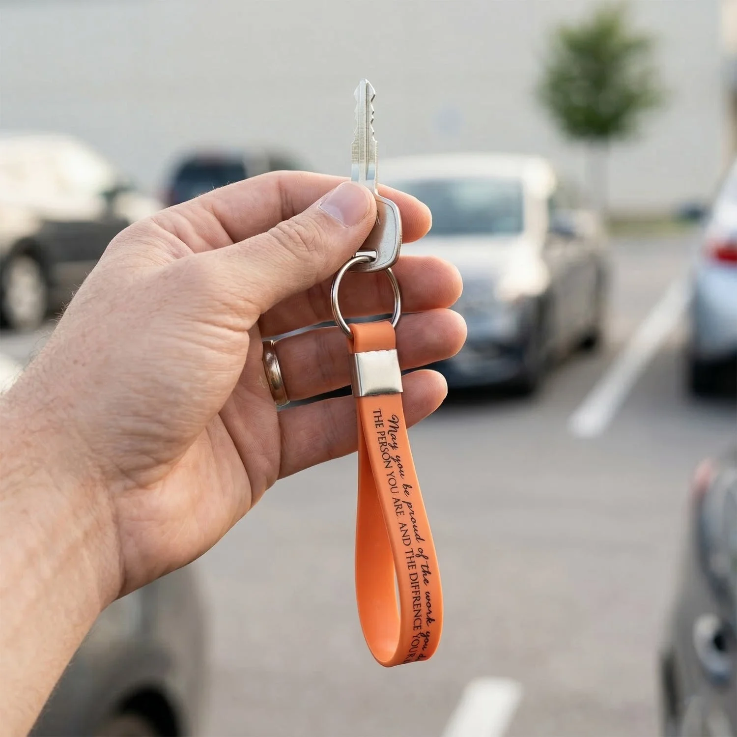 Keep your keys organized with this Silicone Wrist Strap Keychain with Metal Key Ring Hook, designed for easy handling. This silicone wrist strap keychain functions as a wrist loop keychain, offering a comfortable grip for carrying keys on the go.