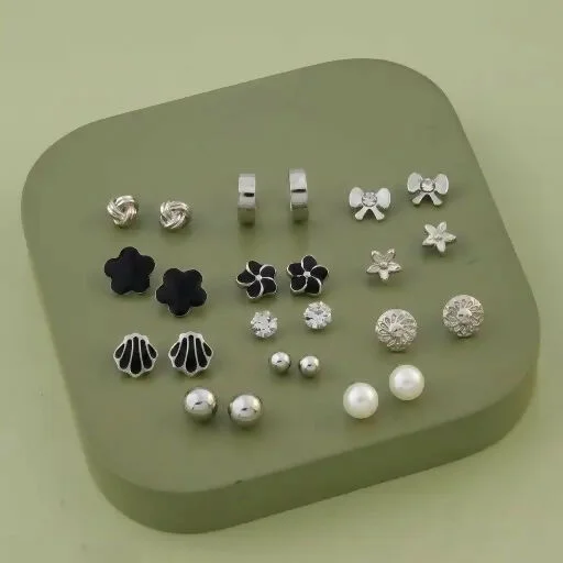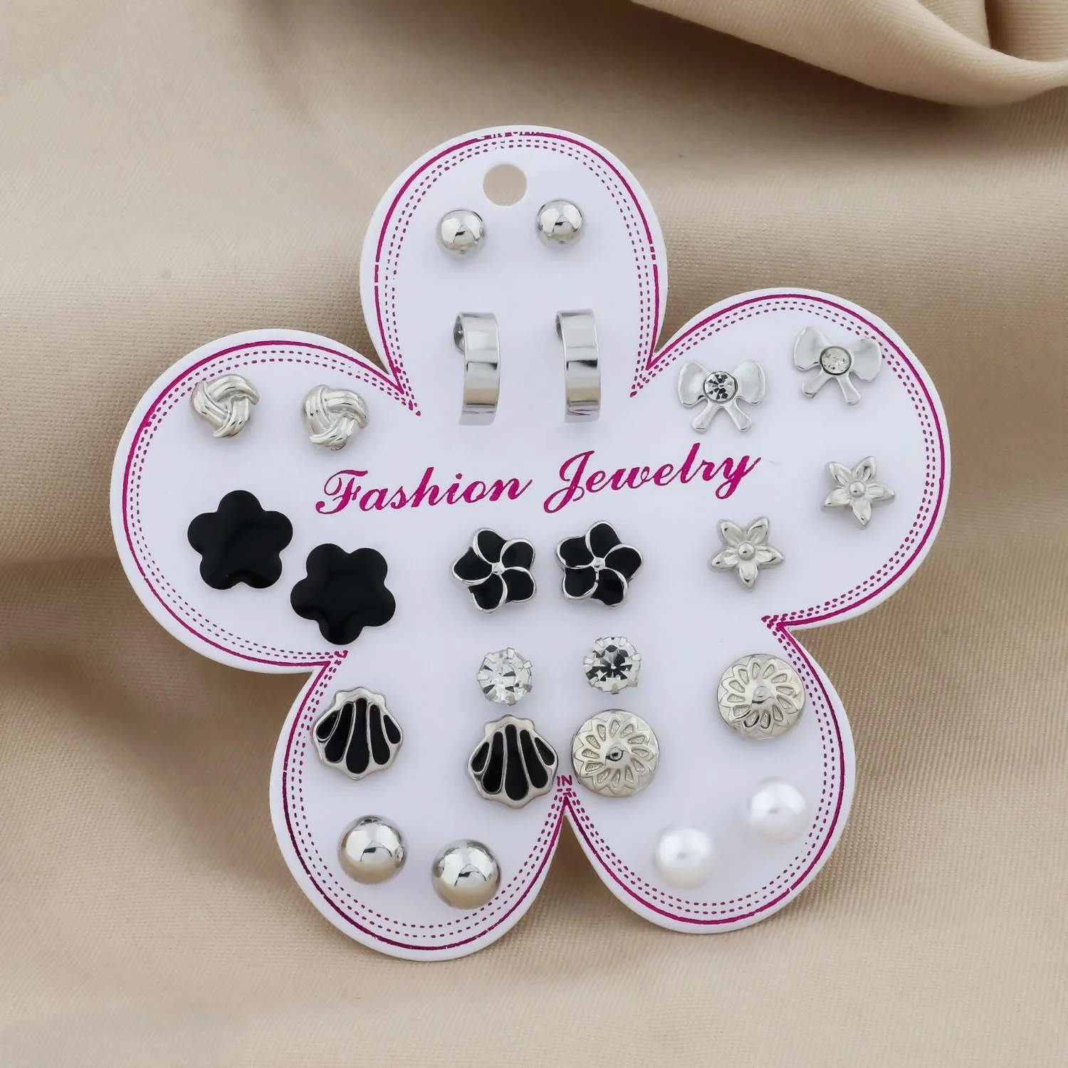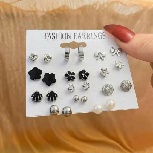 Elevate your everyday style with this elegant 12-pair fashion stud earrings set, designed to match every mood and outfit. Featuring a chic mix of silver, black, pearl, crystal, floral, and geometric designs, this versatile collection is perfect for daily wear, office looks, casual outings, or special occasions.