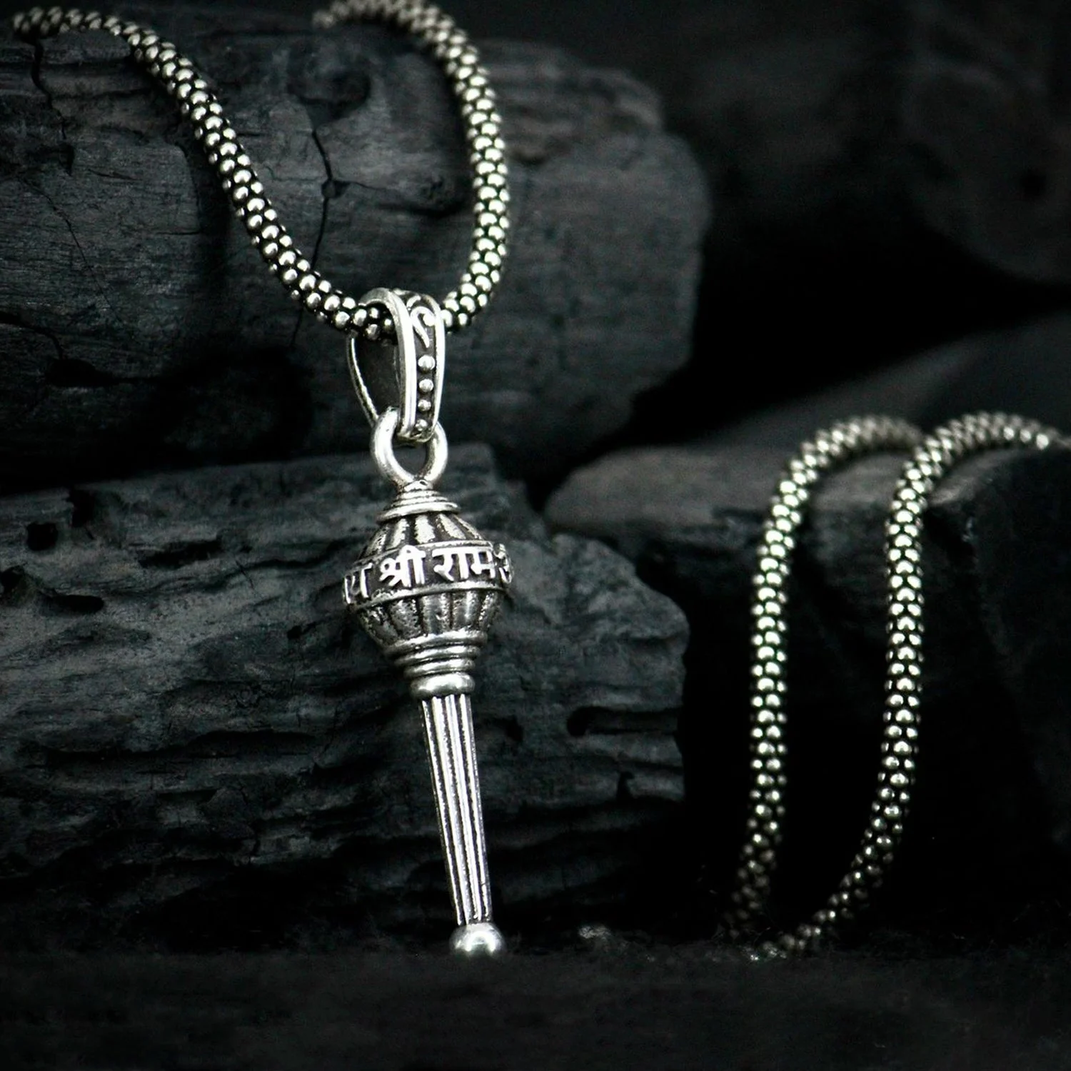 Silver Chain With Gada Pendant / Locket Bajrangi Gada Lord Hanuman Pendant for Boys Pendant Necklace Chain For Men And Women (1 Pc)