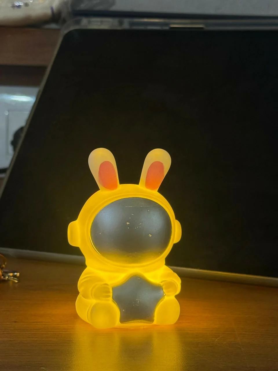 Add a soft and adorable glow to your space with this cute bunny astronaut LED night lamp. Designed with a charming astronaut character wearing bunny ears and holding a star, this lamp creates a warm and calming light perfect for kids’ bedrooms, study tables, or bedside decor. The compact and lightweight design makes it easy to place on desks, shelves, or nightstands. Its soft ambient glow helps create a cozy atmosphere, making it ideal as a night light for children or a decorative lamp for home and office spaces. This cute lamp also makes a wonderful gift for kids, birthdays, and special occasions.