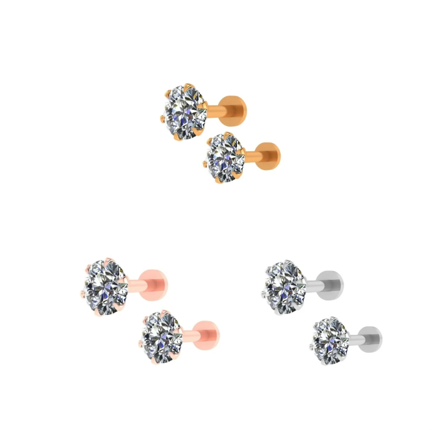 Be the first to review Silver Gold rose Plated Round AD Solitaire Flat Back Stud Earrings Combo Pack of 3!