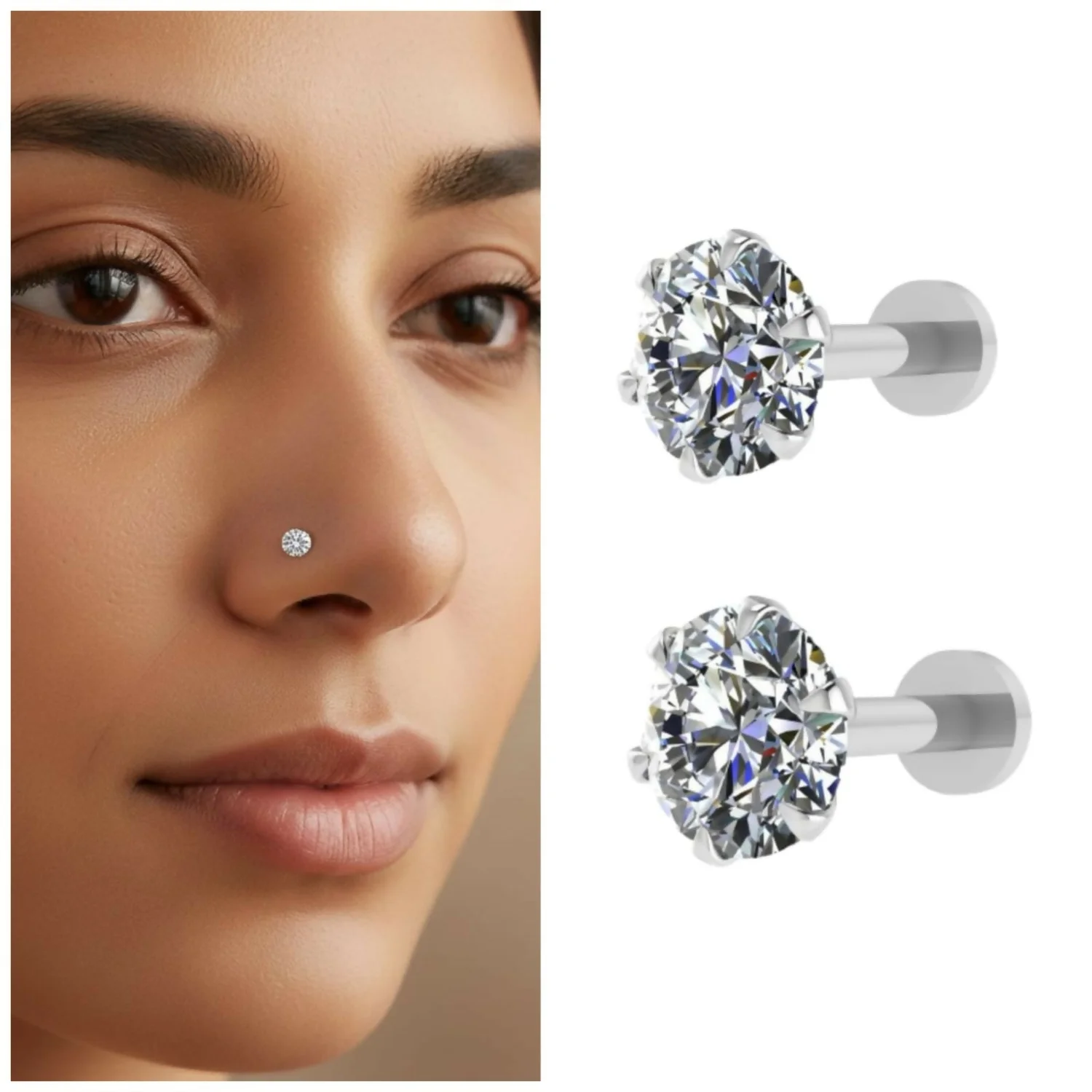 Be the first to review silver plated AD Flat Back Nosepin Stud for women and girls Combo Pack of 2!