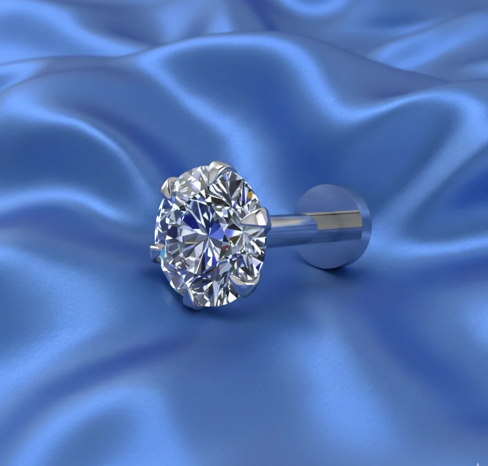 Elevate your everyday sparkle with our 6-Prong Round Brilliant Labret Stud. Crafted for both comfort and elegance, this piece features a stunning, high-clarity round-cut stone held securely by a classic six-prong setting. The sleek flat-back design ensures a flush, comfortable fit against the skin, making it perfect for long-term wear in various piercings.