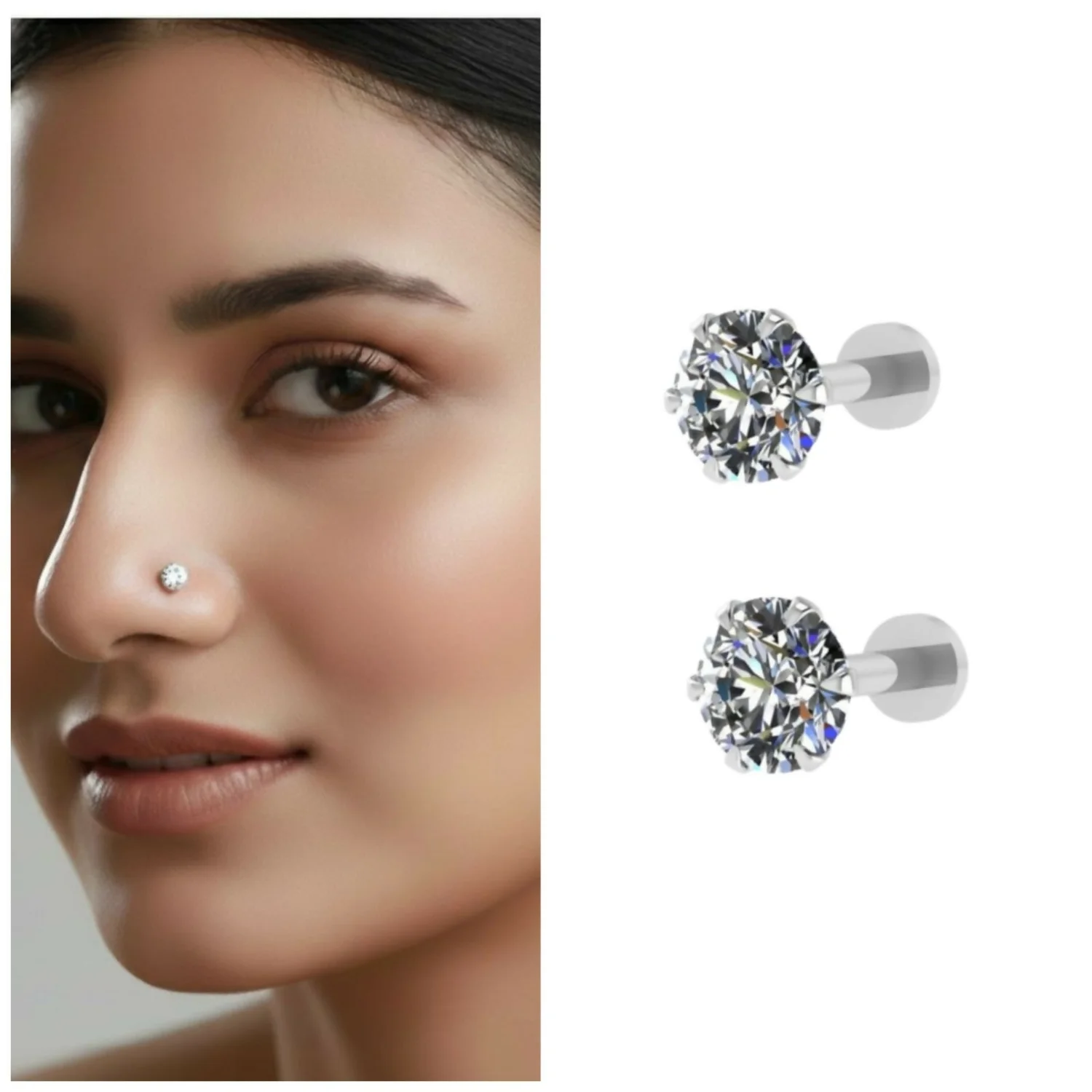 Be the first to review Silver plated AD Nosepin Stud Internally Threaded Labret for women and girls Combo Pack of 2!