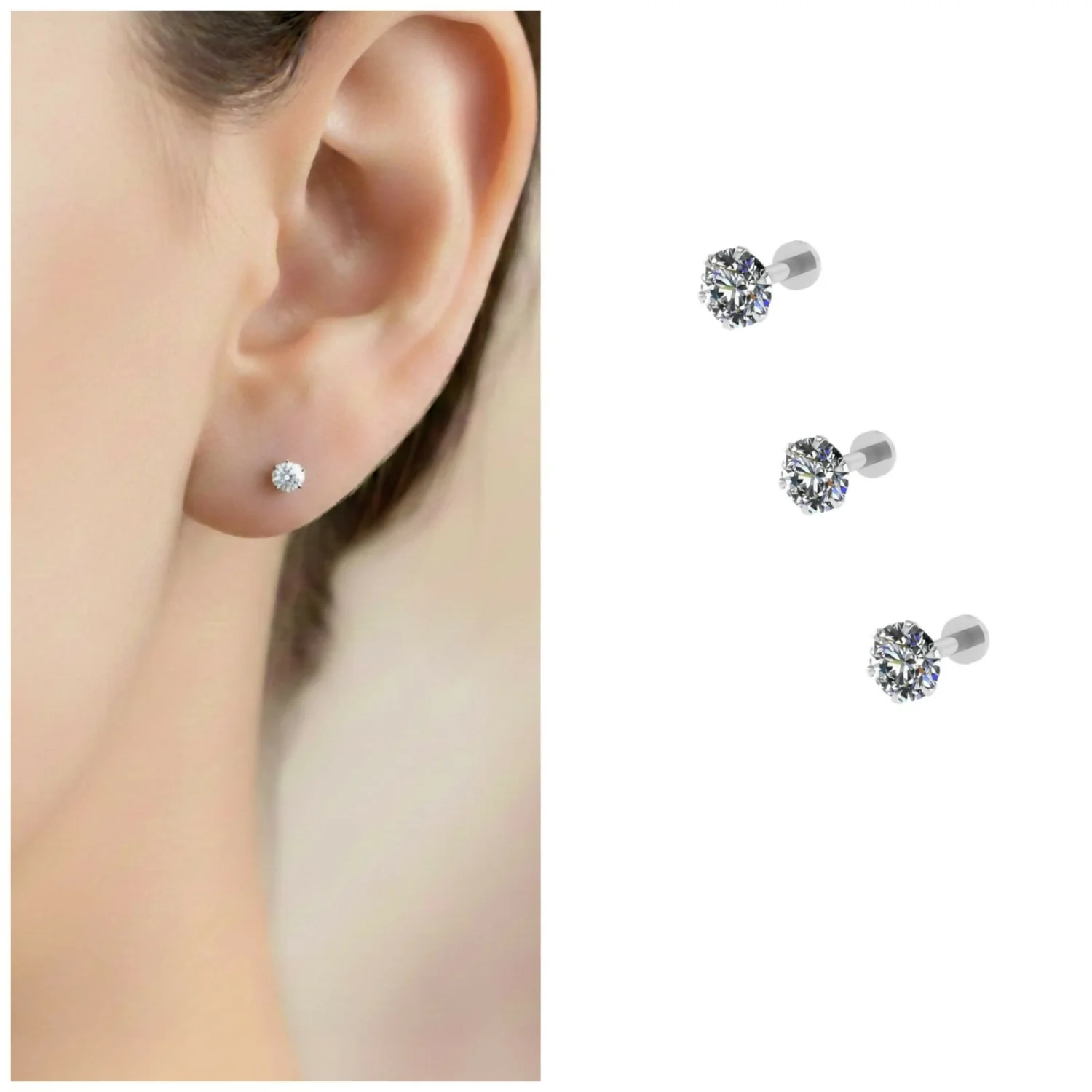 Elevate your everyday style with ultimate comfort. These Silver Plated Round Cubic Zirconia Studs feature a sleek flat-back design, making them perfect for those who want to avoid the "poke" of traditional butterfly backs. Whether you're sleeping, wearing headphones, or layering multiple piercings, these studs offer a seamless, irritation-free experience.
