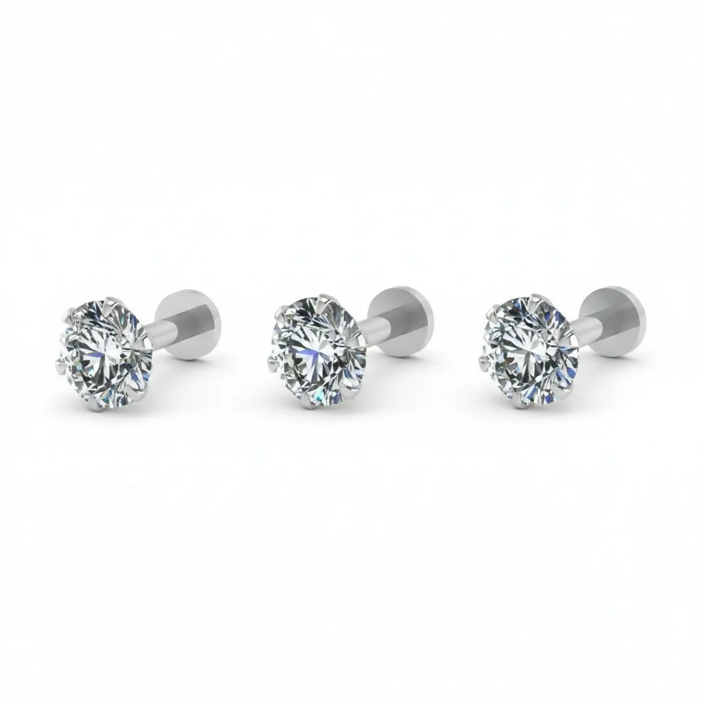 Comfort-First Design: The smooth flat-back (labret style) sits flush against the skin, ideal for lobe, helix, tragus, or cartilage piercings.