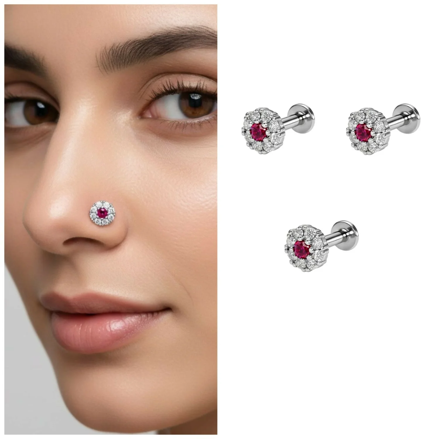 Be the first to review Silver Plated Ruby & Diamond Floral Halo Nose Stud girls Combo Pack of 3!