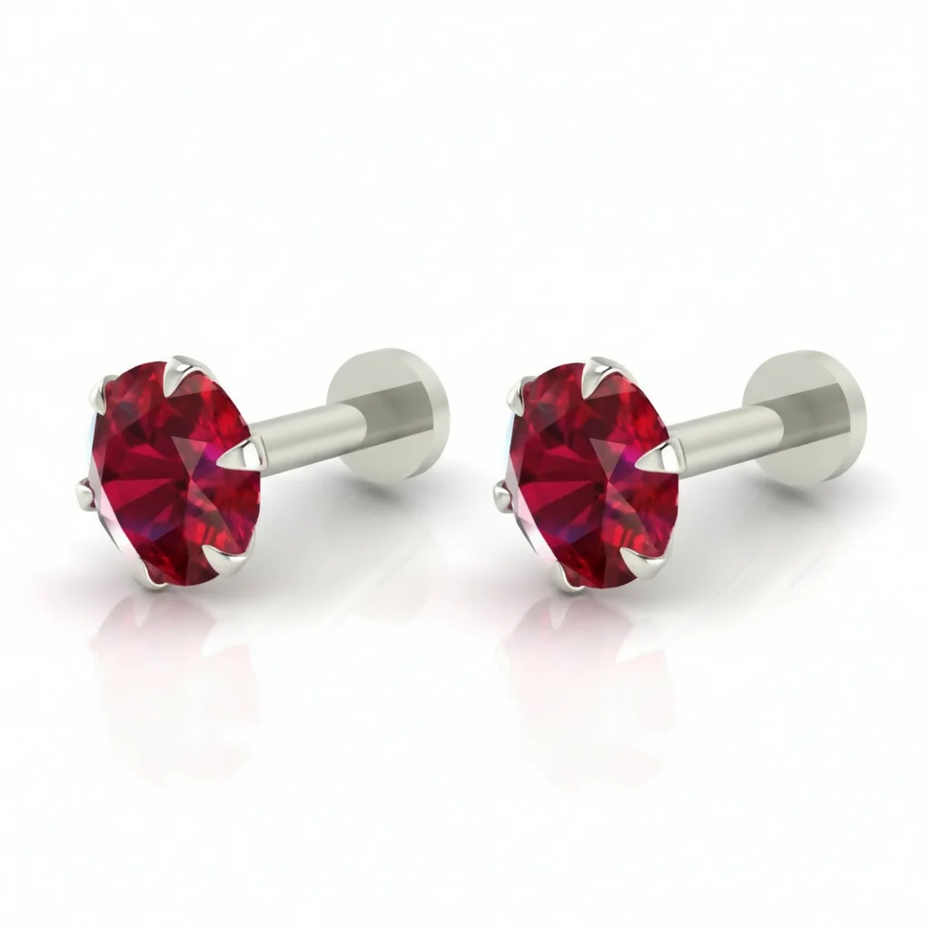 Elevate your piercing game with this elegant Silver Plated Ruby Red Crystal Labret. Designed for both style and comfort, this versatile piece features a vibrant, multi-faceted red crystal that catches the light from every angle.