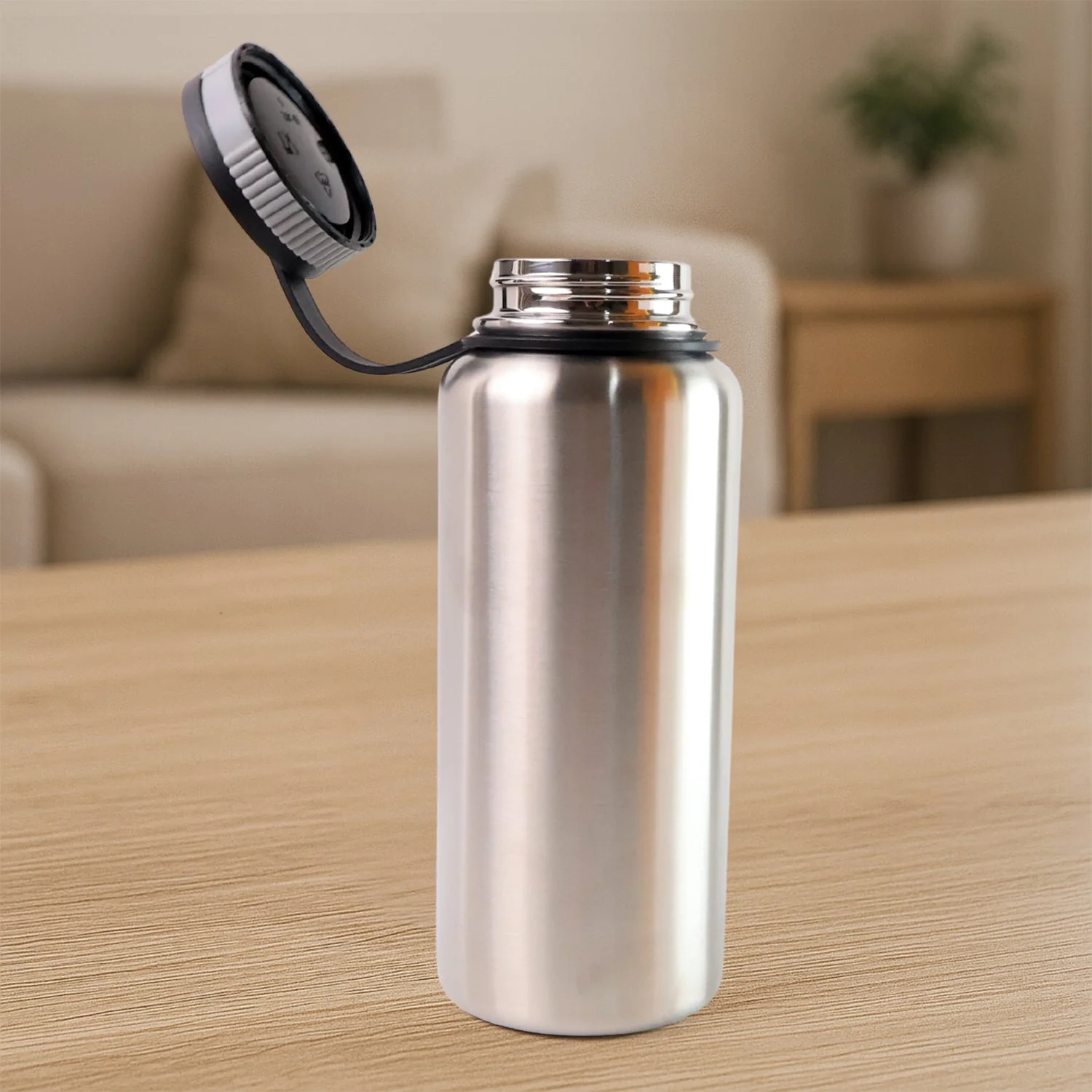 Silver Stainless Steel Double Wall Vacuum-Insulated Drink Water Bottle for Hot & Cold Drinks, Perfect for Senior, Elderly, and Patient Reusable (1000 ML)