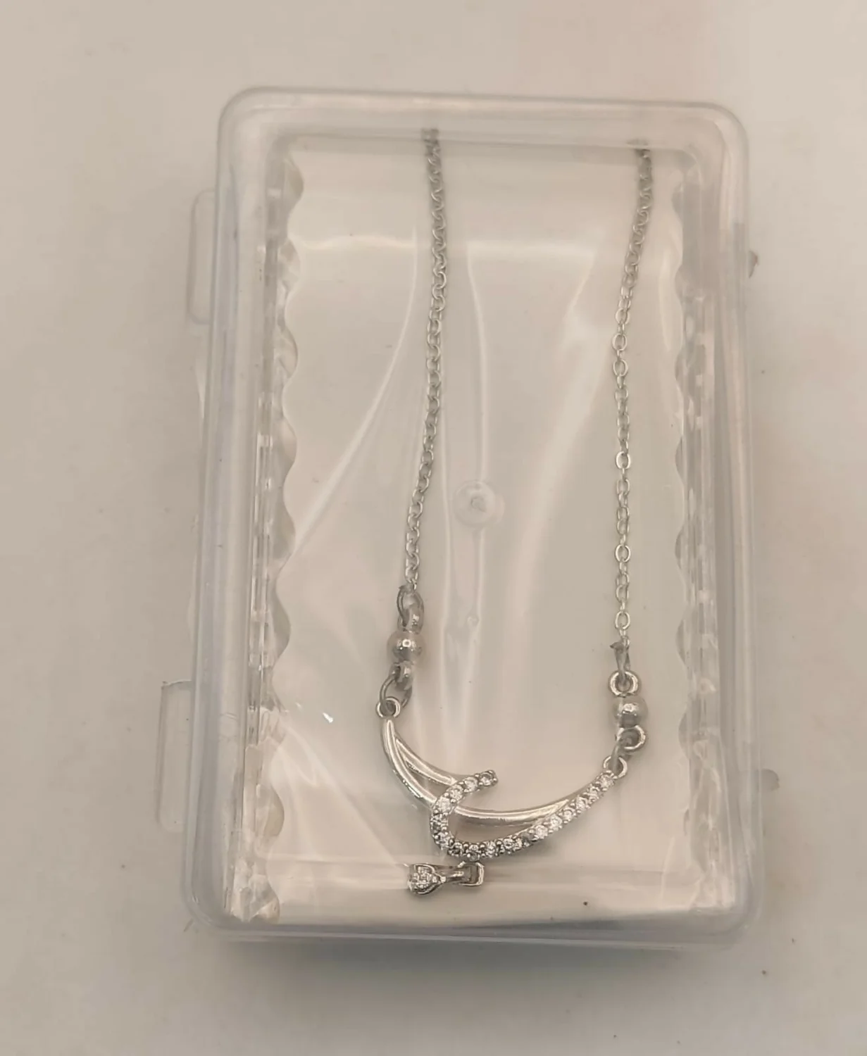 Be the first to review Silver Tone AD Pave Crescent Curve Drop Pendant Necklace!