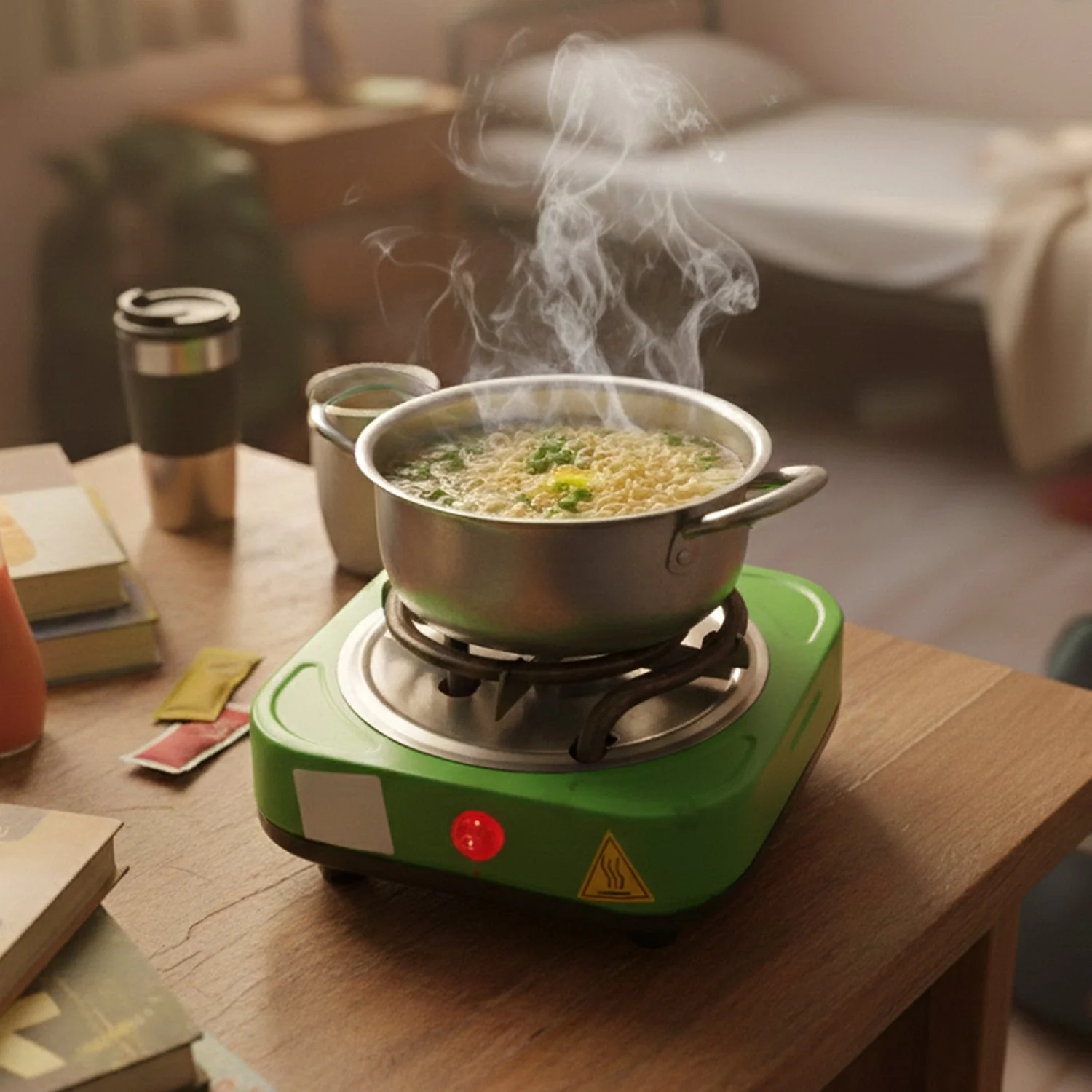 Tea/coffee, soup, instant meals, and light cooking in small cookware
