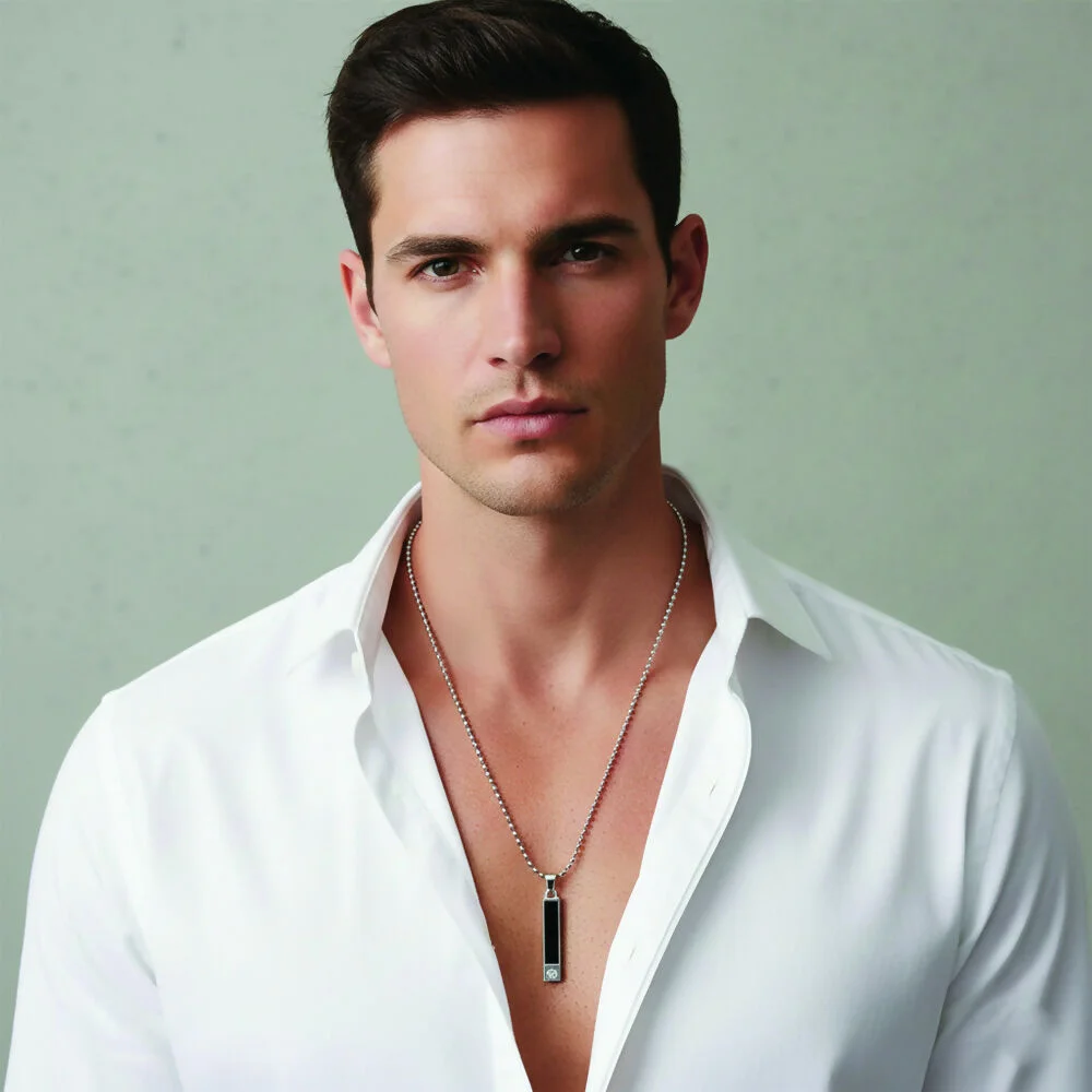 Be the first to review Sleek Rectangal Black Inaly Pendent For Mens!