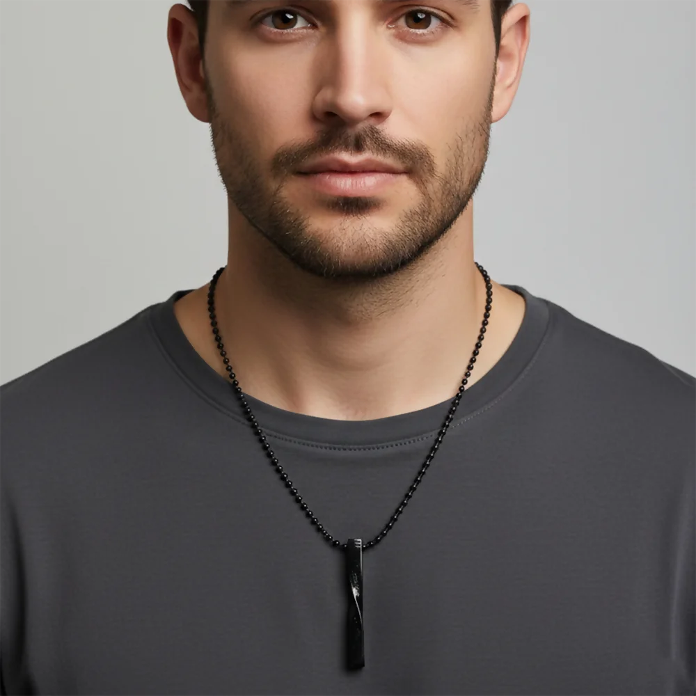 Be the first to review Sleek Twisted Black Bar Chain Pendant for Men!
