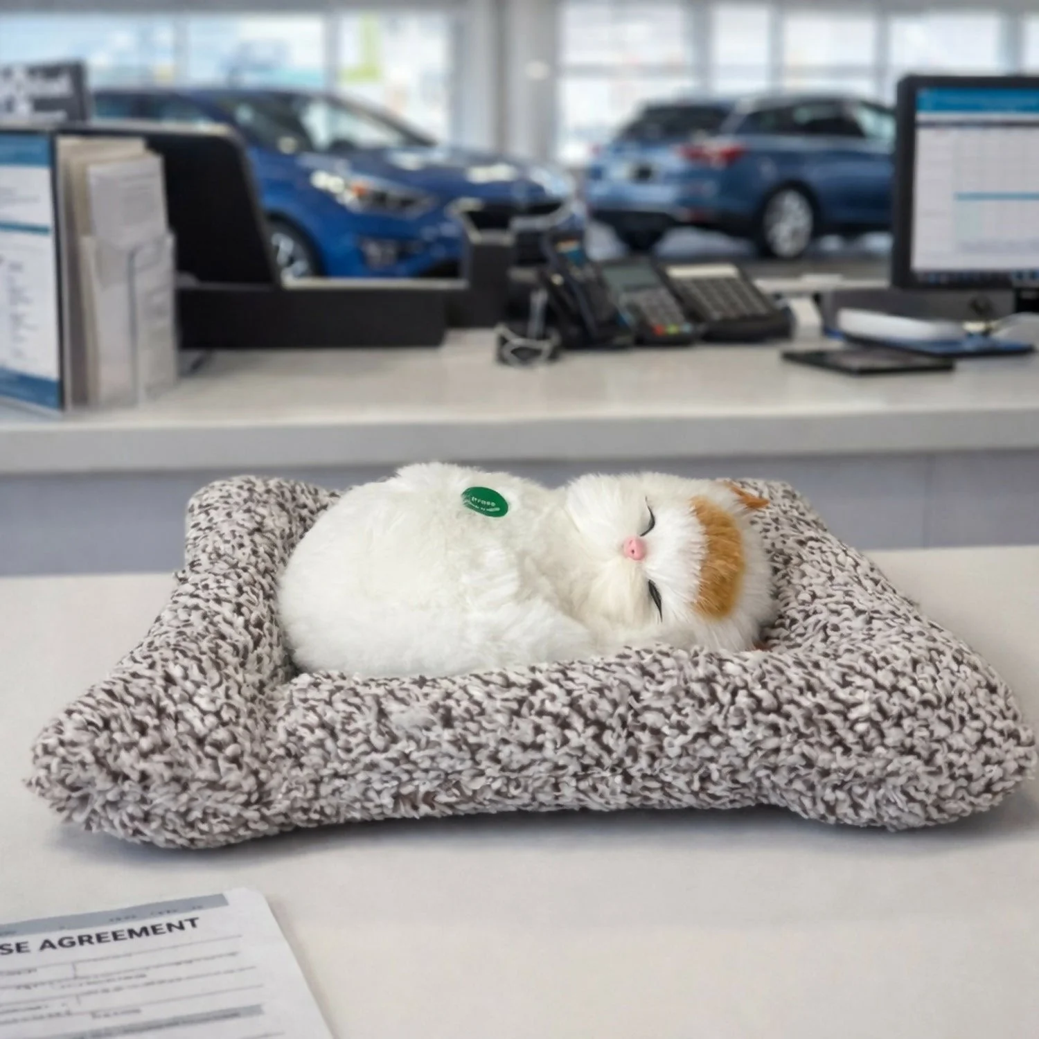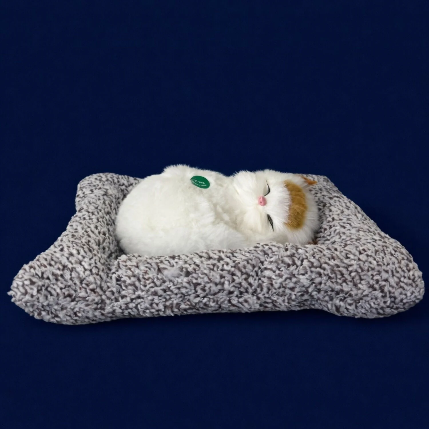 • Cute sleeping cat figurine placed on a soft textured cushion