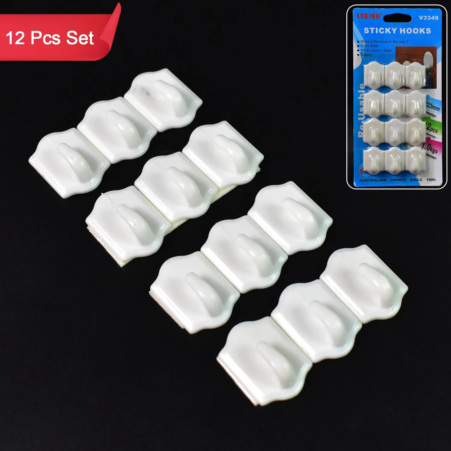 Adhesive Hooks for Wall Hanging Adhesive Hooks for Bathroom, Kitchen (12 pcs Set)