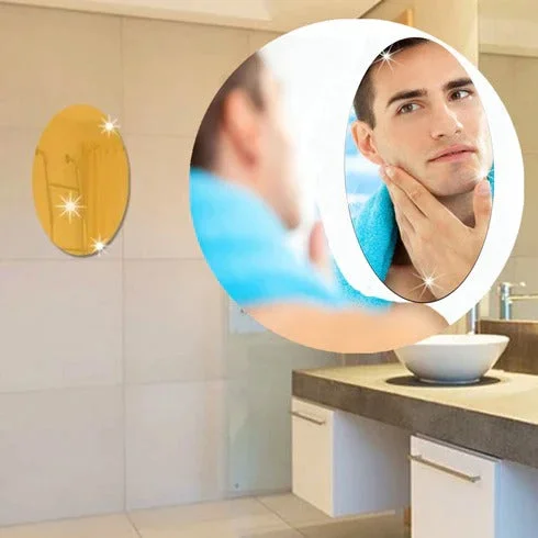 Bathroom Oval Shape Sticker Magic Mirror, Adhesive Bathroom Mirror Wall Sticker 3 Dimensional Mirror Effect Oval Wall Art Decals