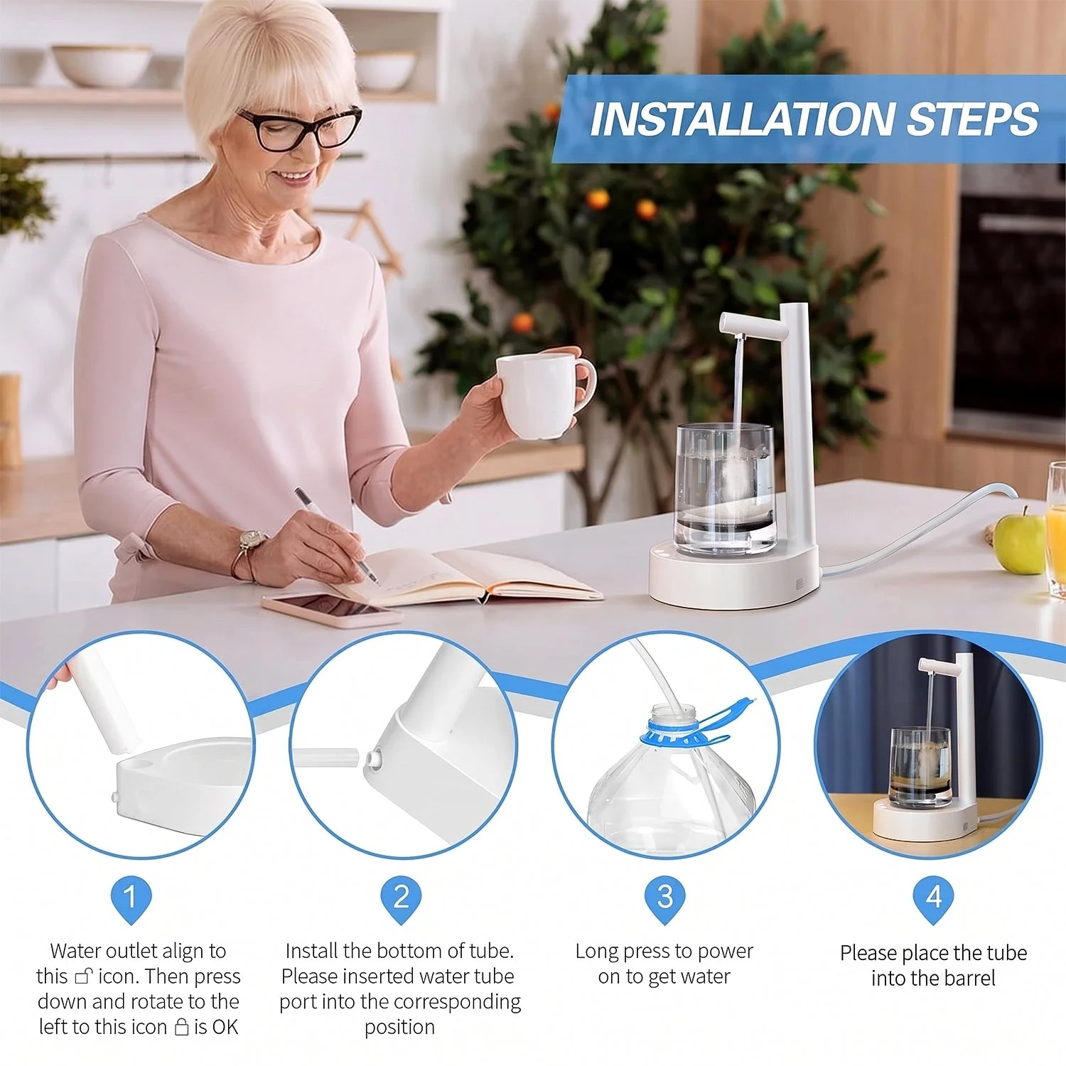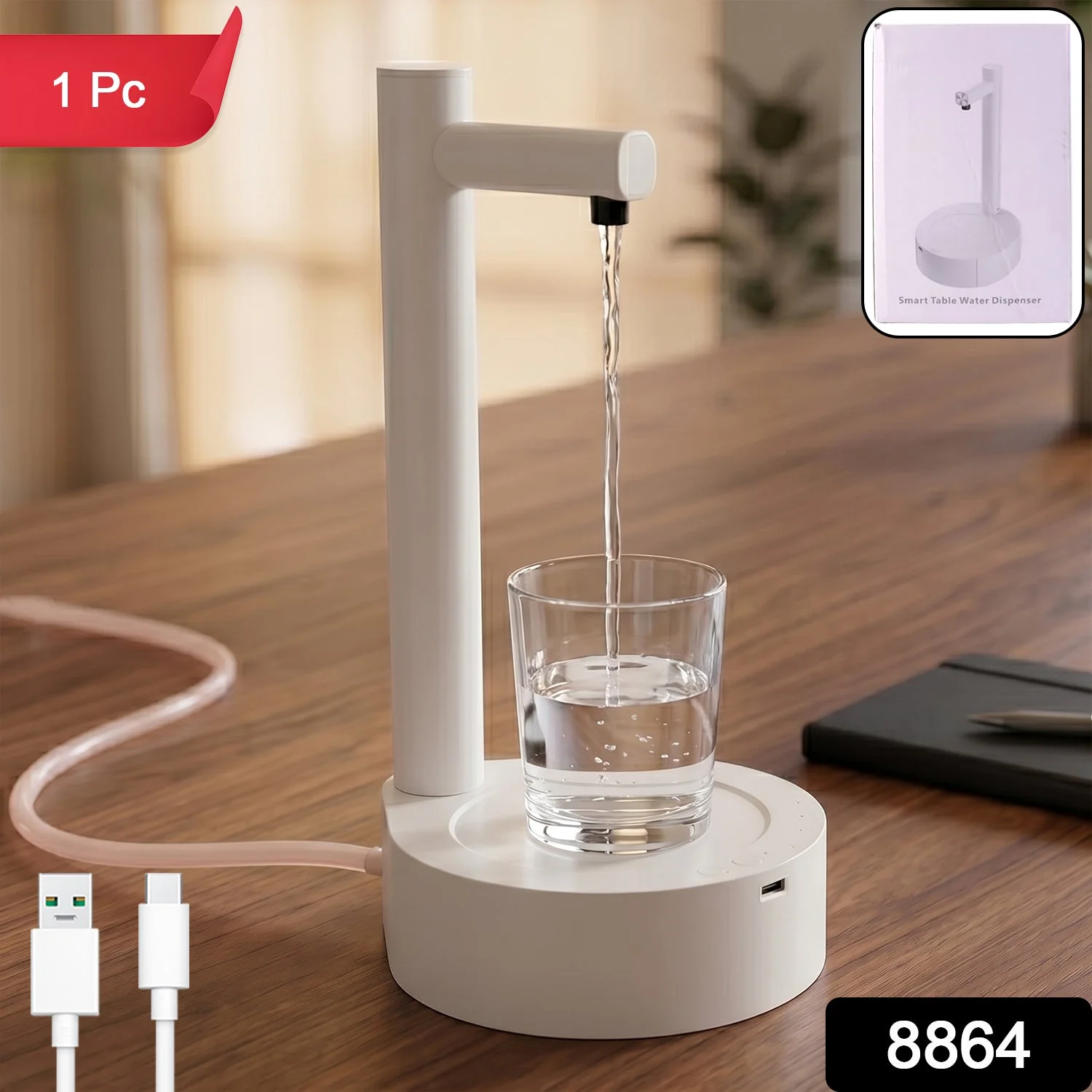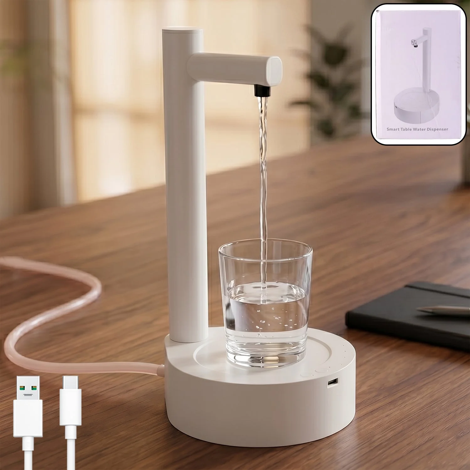 Smart Table Water Dispenser, Automatic Water Pouring System for Home or Office - USB Rechargeable, Compact Design