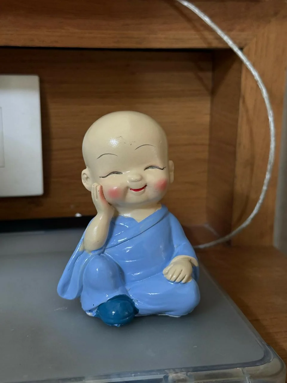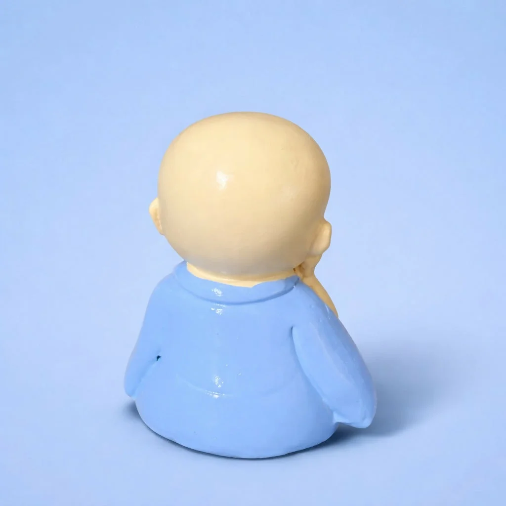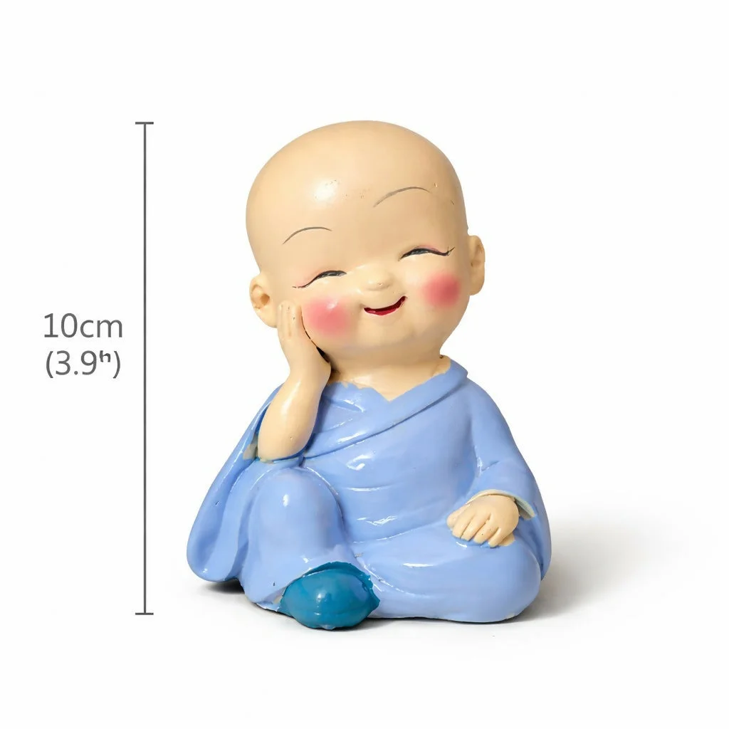 monk showpiece, baby buddha statue, cute monk figurine, desk decor item, small buddha idol, home decoration item, office desk decor, smiling monk statue, gift showpiece, decorative figurine, miniature statue, spiritual decor, shelf decoration item